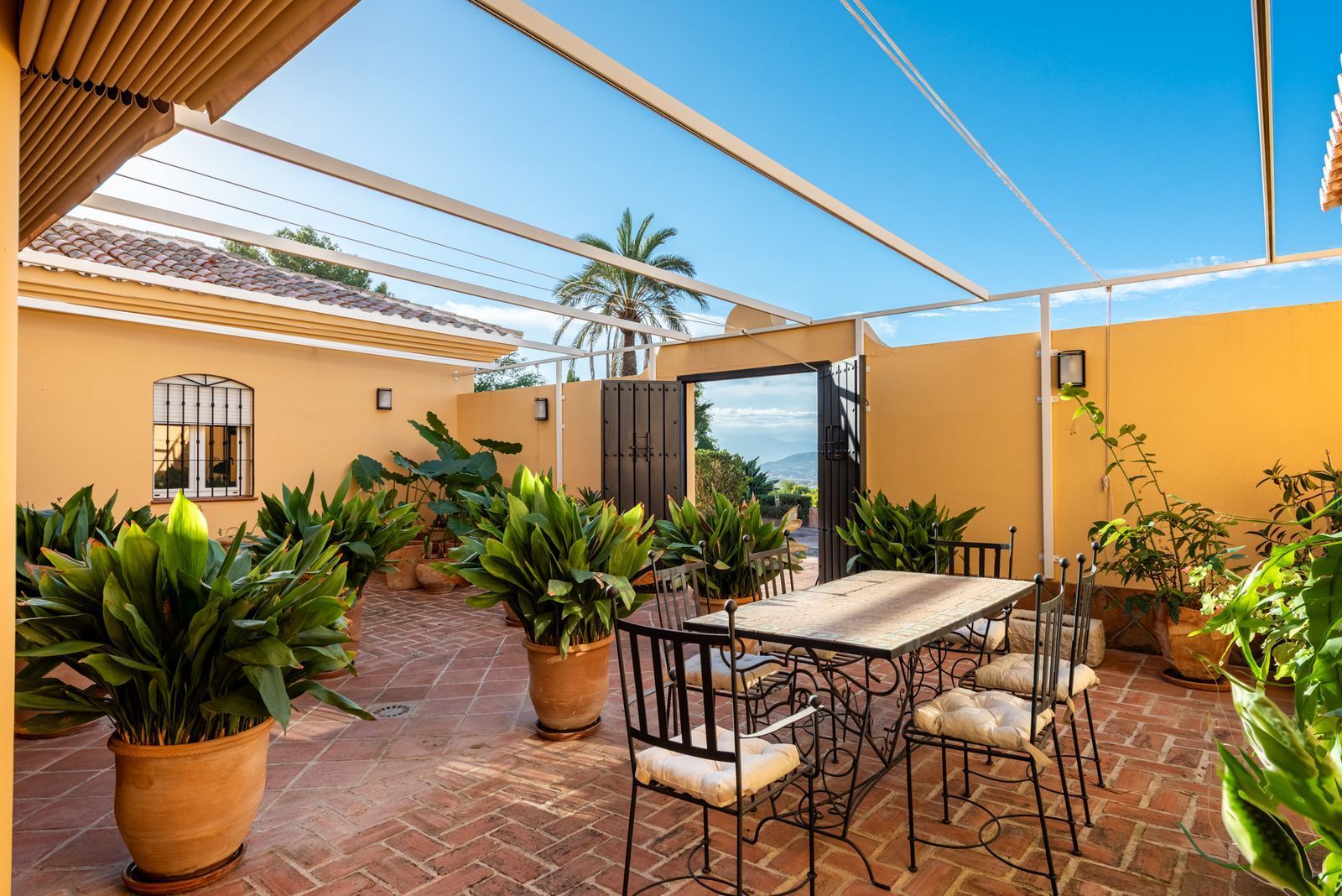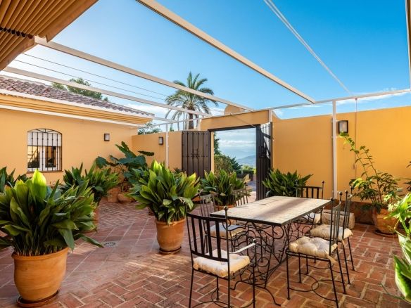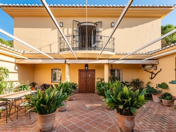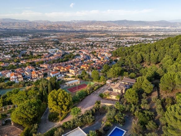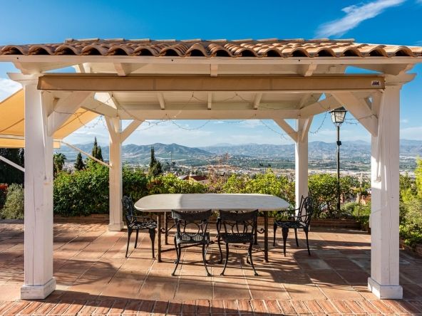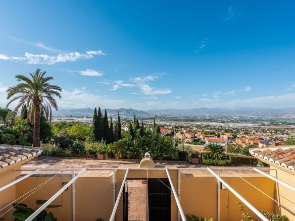 Perched at the foot of the Jabalcuza Mountain, recently declared a Natural Monument by the Junta de Andalucía, El Ksar is a one-of-a-kind estate in Alhaurín de la Torre offering a rare combination of privacy, luxury, and connection with nature. Set amidst lush gardens and abundant fruit trees, it enjoys breathtaking panoramic views of the Guadalhorce Valley, and is located at the end of a quiet cul-de-sac, ensuring absolute seclusion with no passing traffic. Despite its peaceful setting, the property is only a few minutes from the town centre, shops, Málaga city, and the international airport, perfectly balancing tranquillity with convenience.