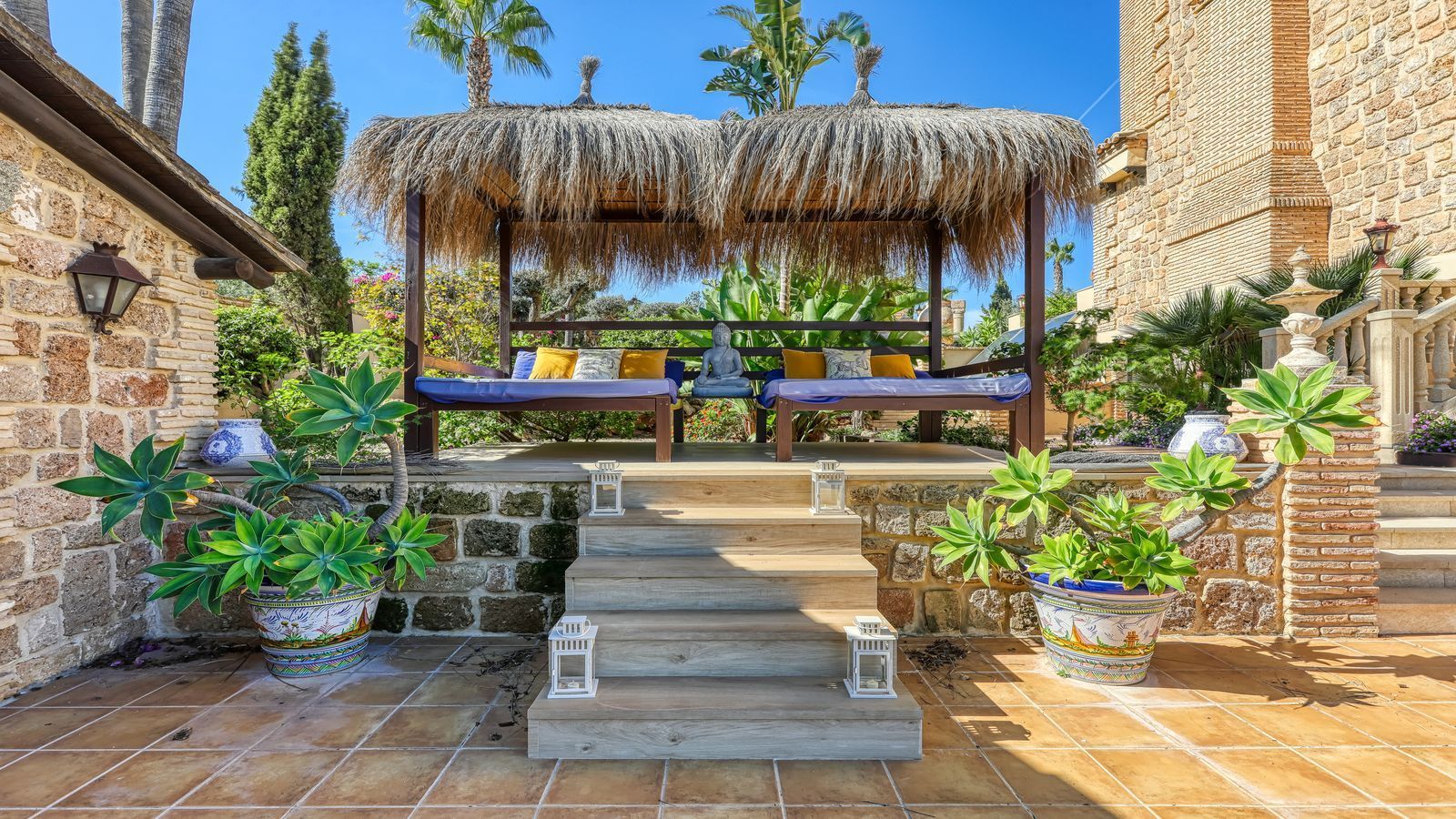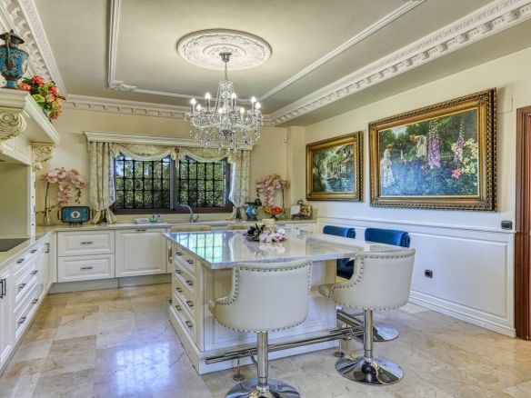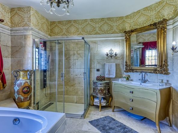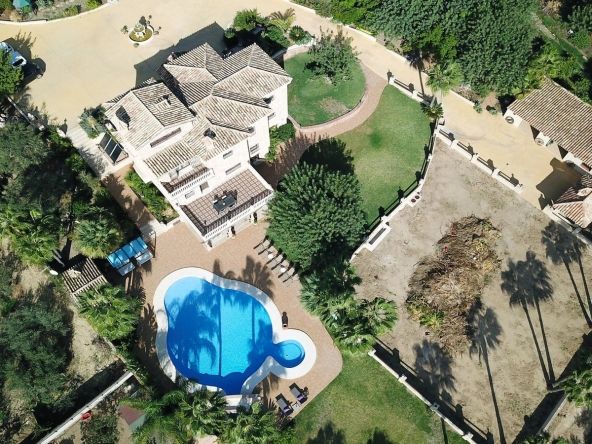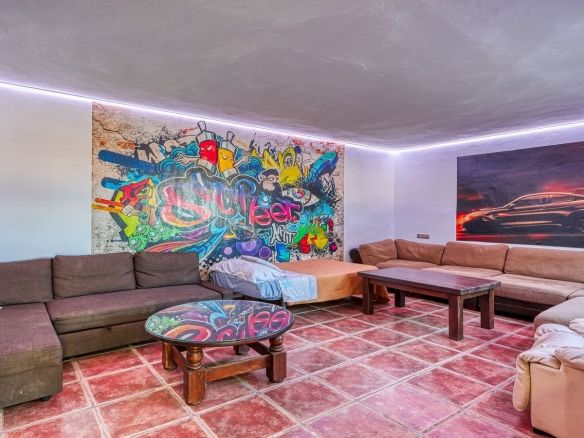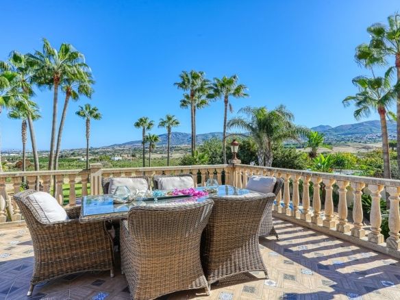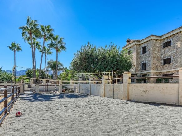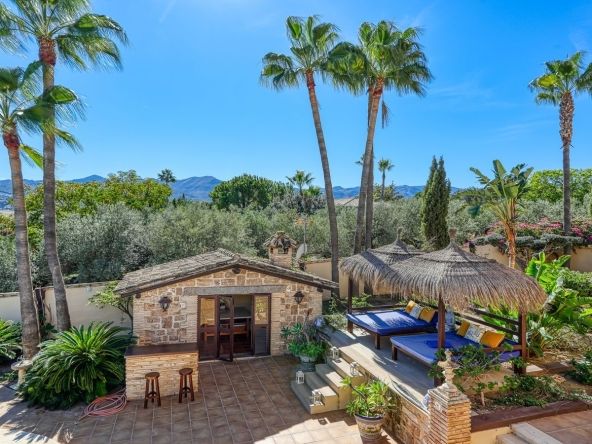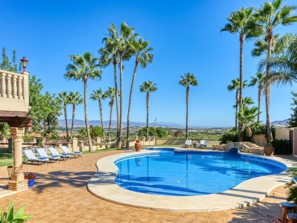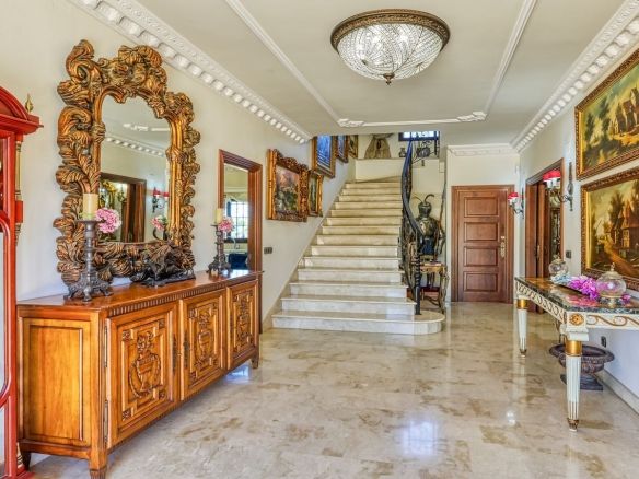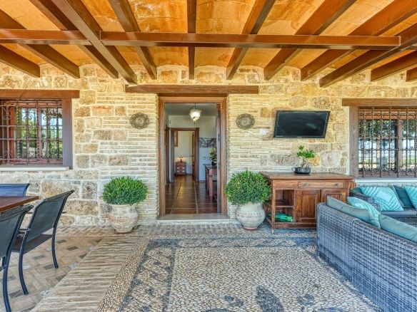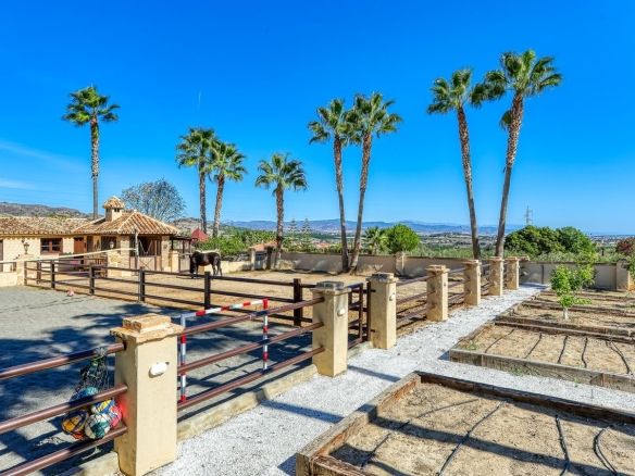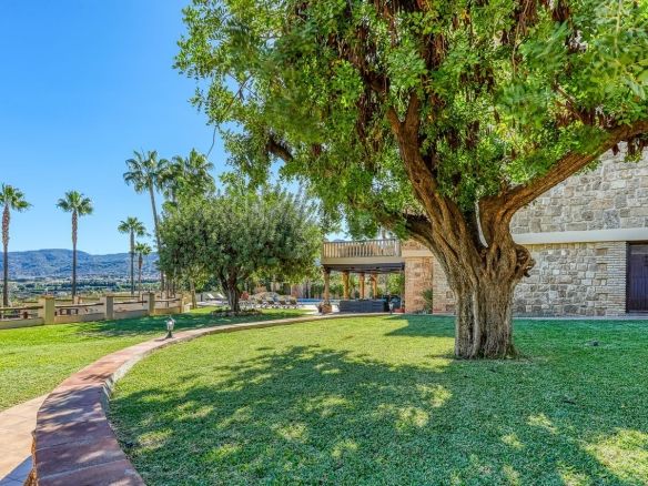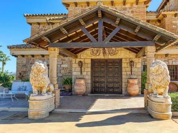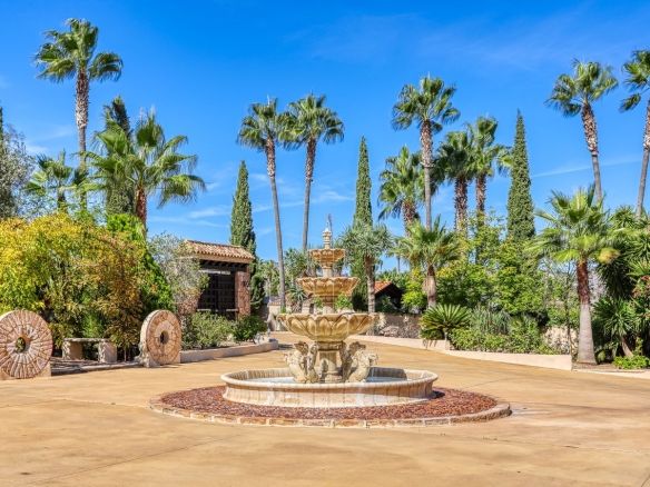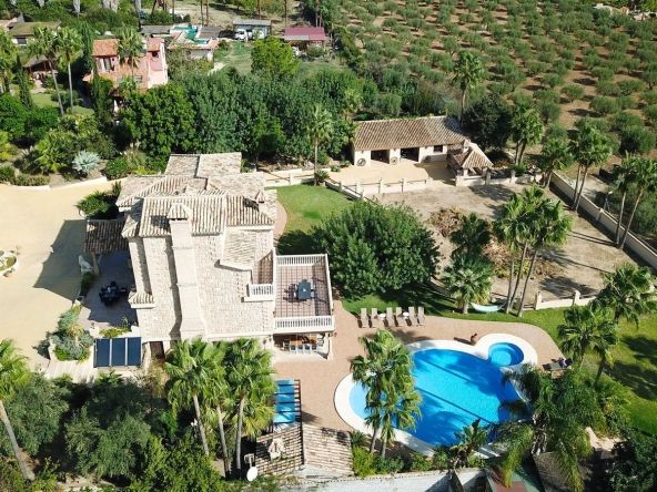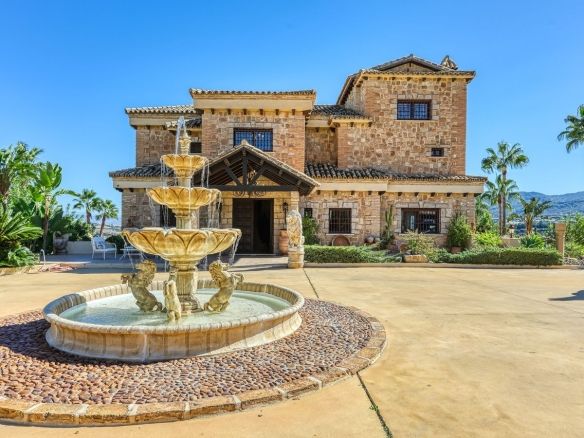 Discover this one-of-a-kind luxurious country estate —a perfect blend of modern elegance and rustic charm, situated just 20 minutes from Málaga Airport and near the lively town of Alhaurín de la Torre. The commanding mansion is beautifully encased in local stone, carefully reclaimed and restored, which imbues the property with unique character and charm. Standout features include the main hall’s stately stone fireplace and a hand-carved coat of arms, all framed by impressive outer columns imported from India.
