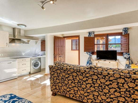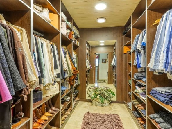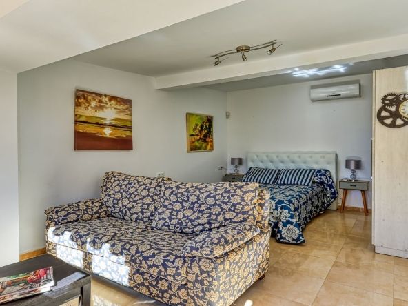 On the pool level, a separate living area offers a private oasis with its own comfortable living room, covered porch with a convenient WC, fully equipped kitchen, additional bathroom, and three bedrooms. This floor also includes ample storage with a dedicated cold room, a boiler room, and additional storage space, ideal for seamless living.
