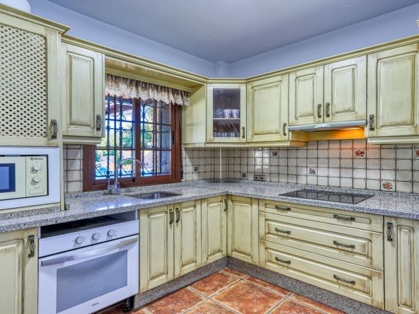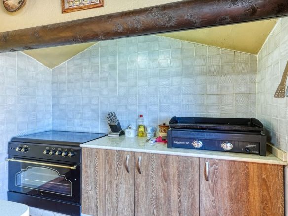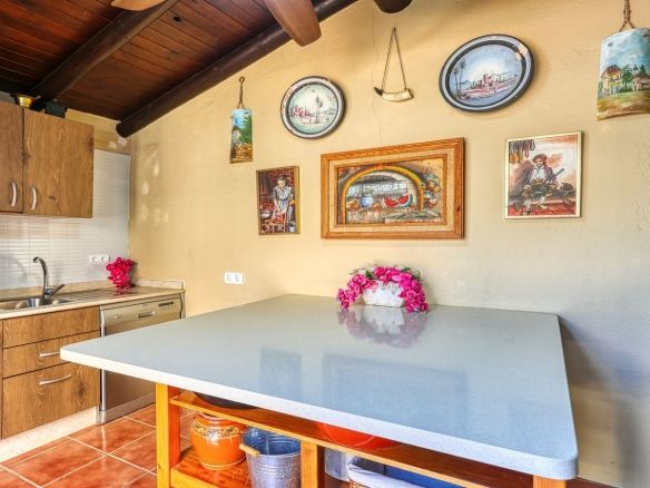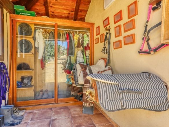 The property’s outdoor spaces include a spacious outdoor kitchen, perfect for al fresco dining, and a variety of outbuildings designed to enhance both lifestyle and functionality. These include two independent garages, a studio with a kitchen and bathroom, additional storage rooms, and a stable. A carport provides further covered parking for two vehicles.