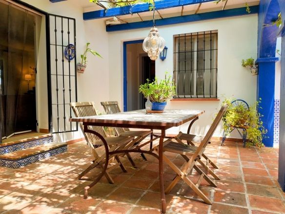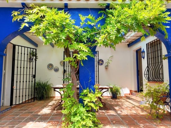 Upon arrival, you're welcomed into a traditional Spanish patio – perfect for a quiet breakfast or morning coffee in the sun.