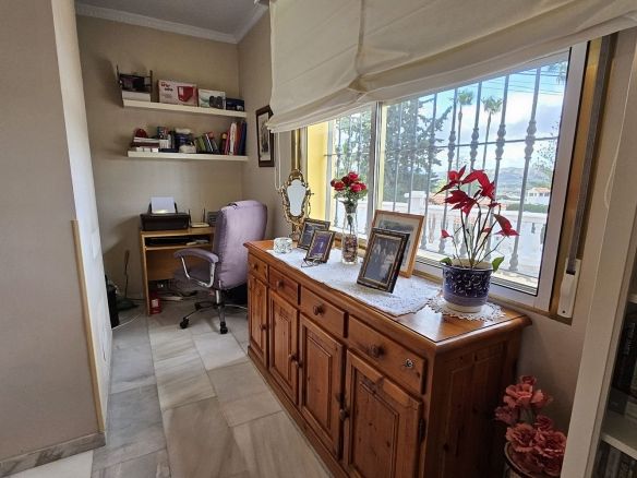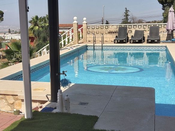 The house is set in an elevated position and from the front porch and poolside area there are spectacular views of the mountains and towards the City of Malaga.