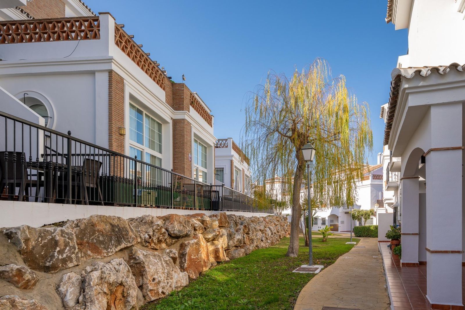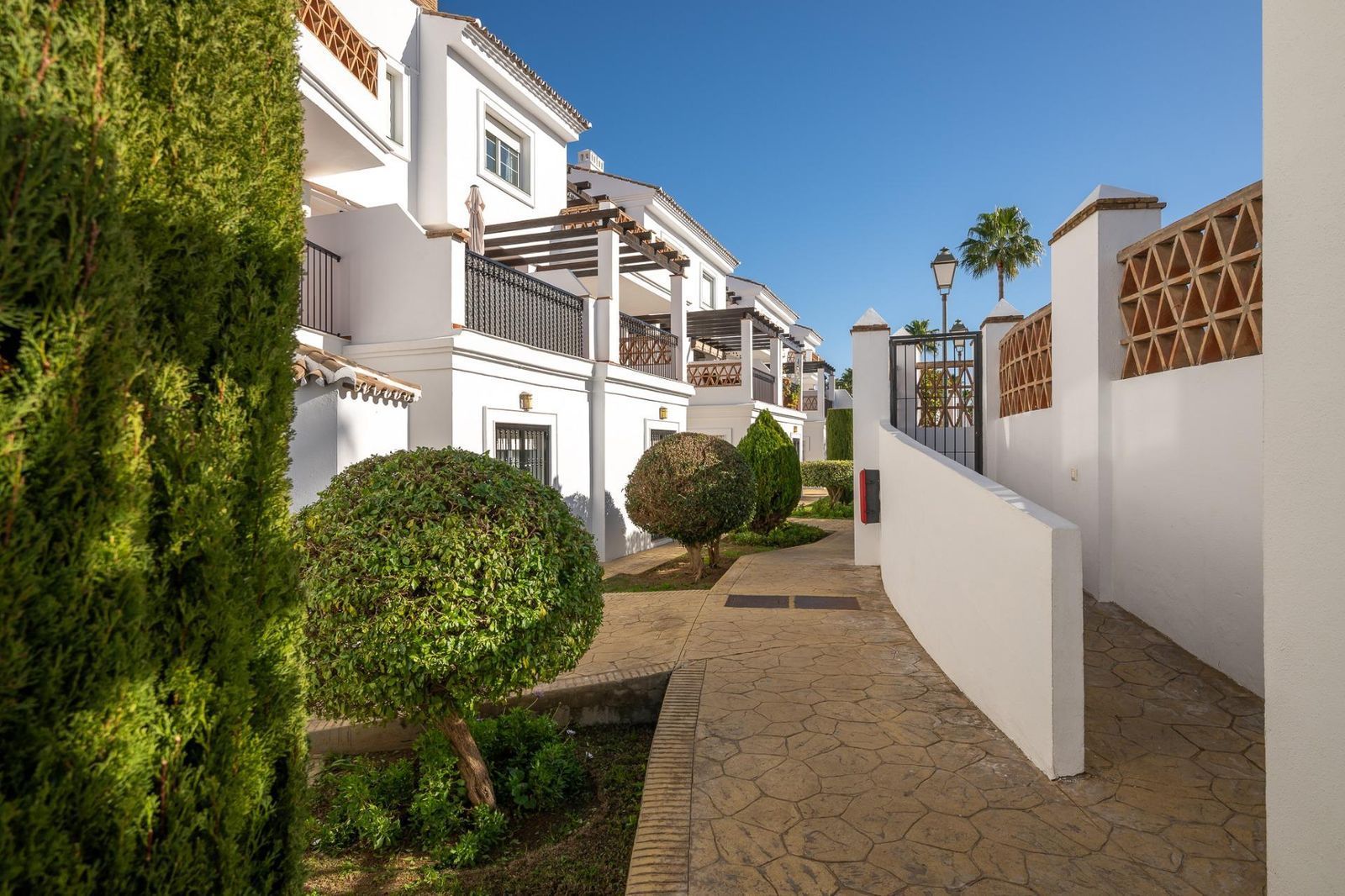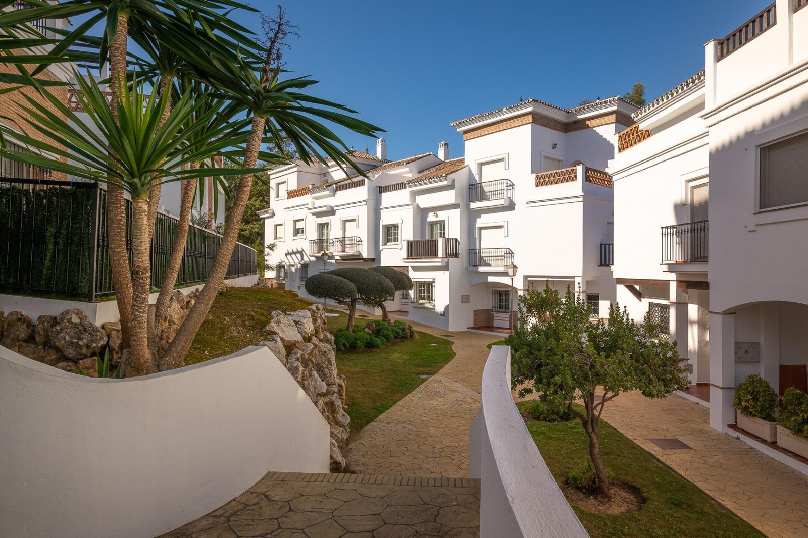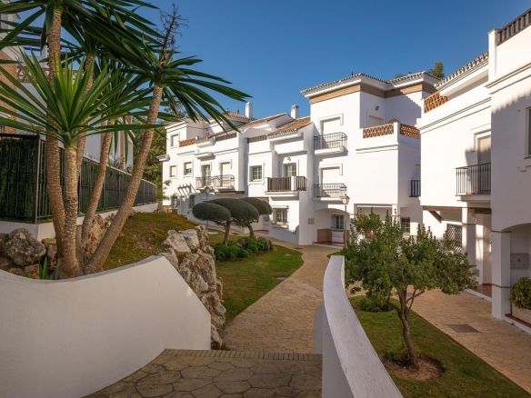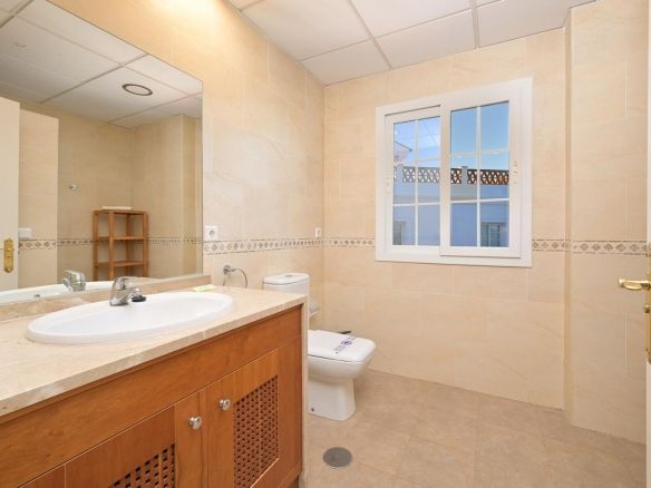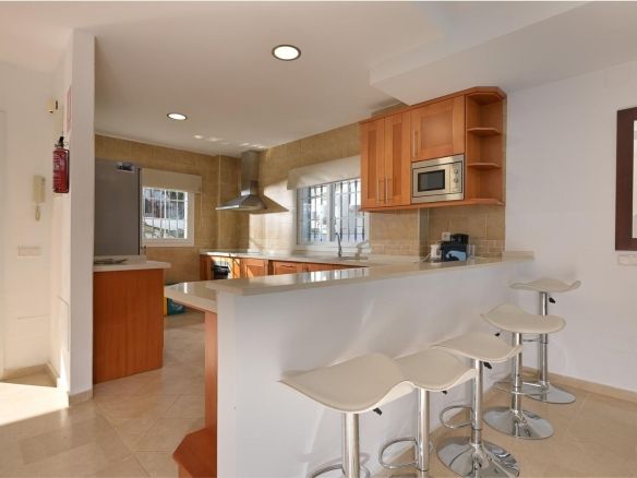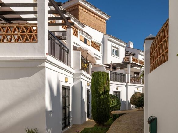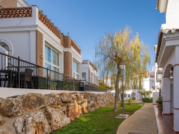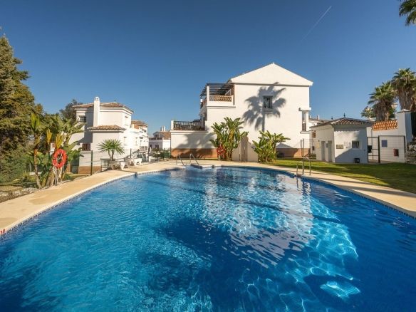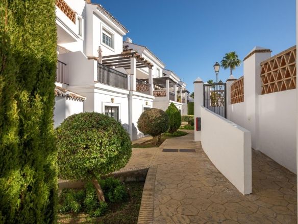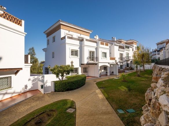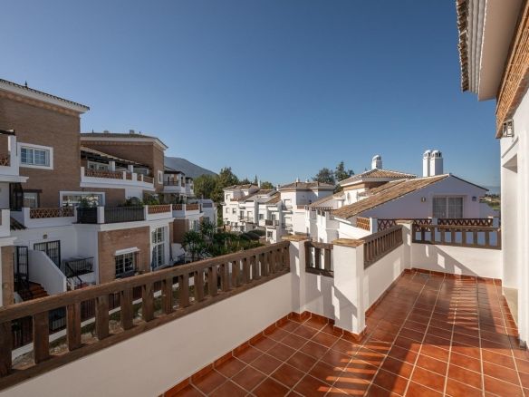 Townhouse for sale in Lauro Golf one of the most prestigious golf courses in Malaga. The property is distributed over three floors. On the ground floor there is a fully equipped kitchen, a toilet, a large living room with a fireplace that leads to a private terrace. On the upper floor there are two en-suite bedrooms and a 3rd bedroom. On the top floor there is a 4rd bedroom with en-suite bathroom with a terrace and a solarium with wonderful views of the golf course. Private parking space and storeroom. Communal gardens a pool. A unique purchase opportunity not to be missed.