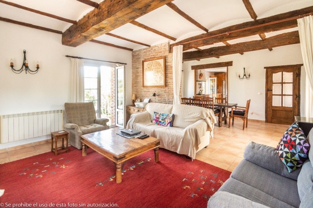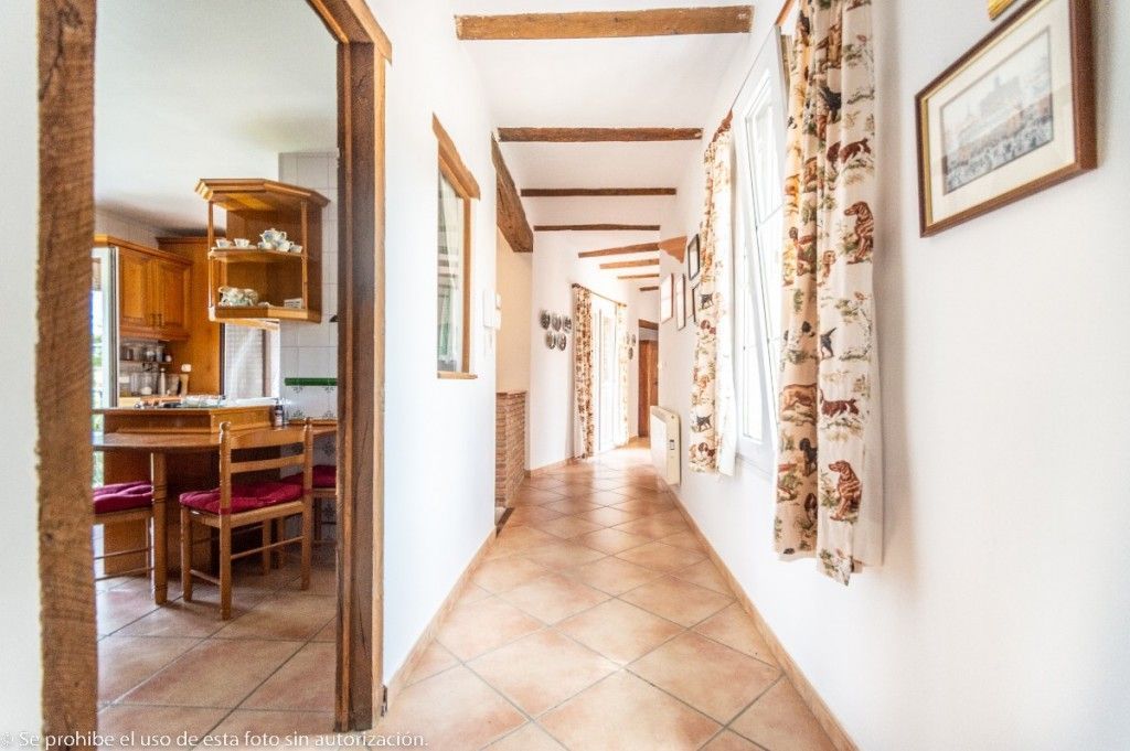 On the left side of the house is the large fully equipped kitchen with breakfast table and access door to the summer patio with panoramic views of the mountains. Separate dining room and very cozy living room with fireplace and lots of natural light.