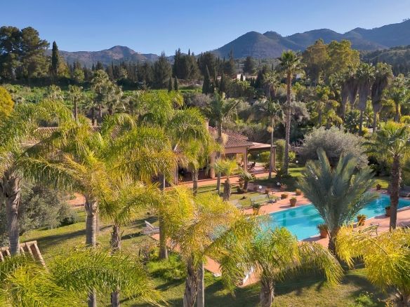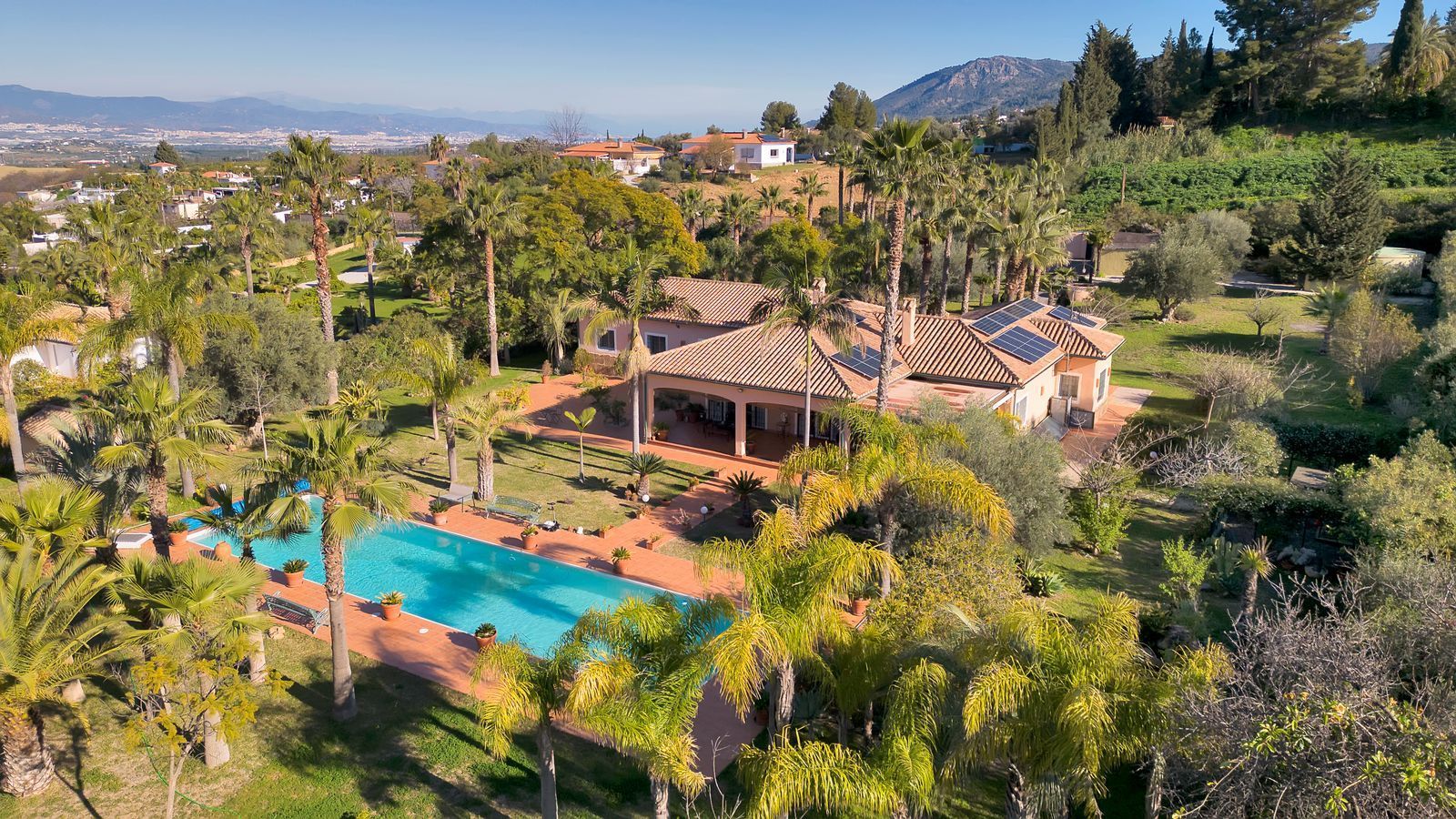 The property has three spacious bedrooms, each with its own full bathroom, plus an additional room housing a laundry room and a sauna. The jewel of this estate is its 20 metre x 5 metre swimming pool, surrounded by palm trees and with breathtaking views of the mountains. For exercise enthusiasts or those looking to relax outdoors, the dojo in the garden is the perfect place.