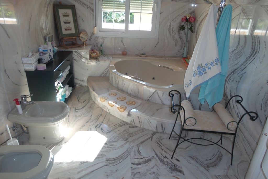 1761-V For sale. A Luxury villa of over 400m2 useful on 1010m2 of fenced plot. Consisting of living room, luxury fitted kitchen, 5 bedrooms with wardrobes, 3 bathrooms, 1 toilet and several terraces. Basement of 150m2 with lounge, wine cellar, garage, porch, pool, mature garden, automatic gates, alarm, video surveillance camera, air conditioning throughout the house cool / cold, roof terrace with spectacular sea views, the Sierra Nevada, Malaga, mount, solar panels, the house has building materials of the highest quality in the market, marble floors, doors and stairs of solid wood, double glazing, and much more, splendid house with many details, in a very desirable area, two minutes walk from schools, colleges, supermarkets, 7 min from the new motorway, 25 minutes from Malaga, the beaches and golf courses of the Costa del Sol. Very exclusive product.