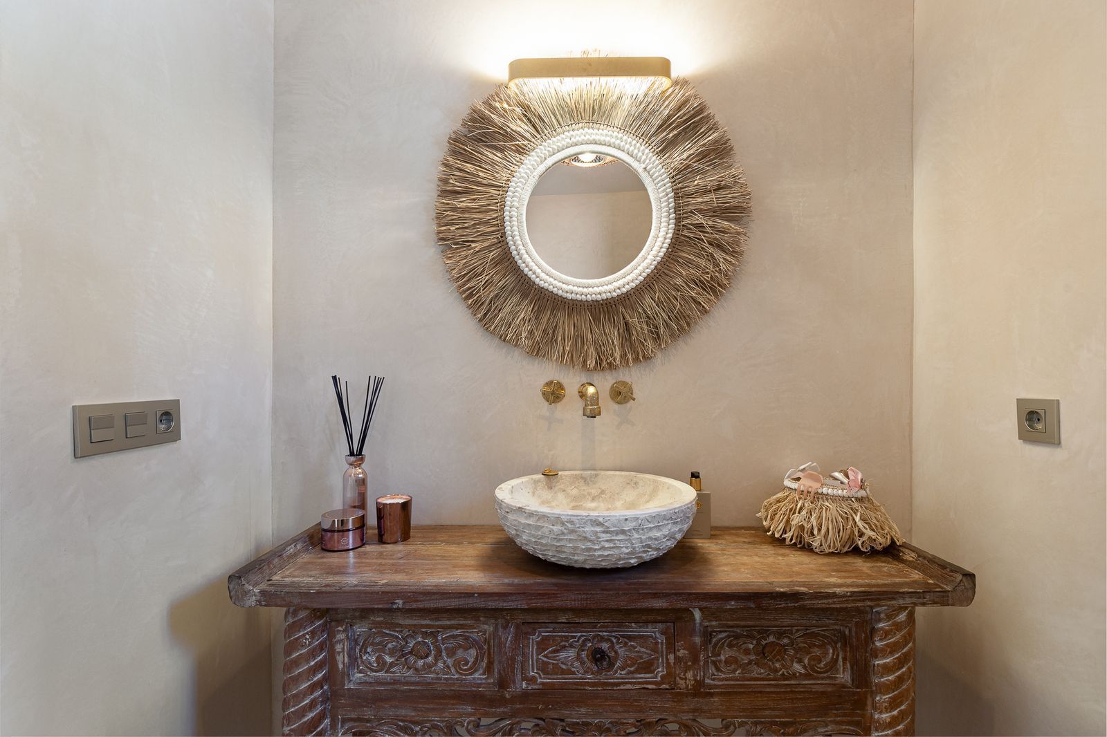 – Bali's Touch: Unveil the secrets of the East with unique sliding doors, directly imported from Bali. An exquisite fusion of cultures are braught in the design of this finca.