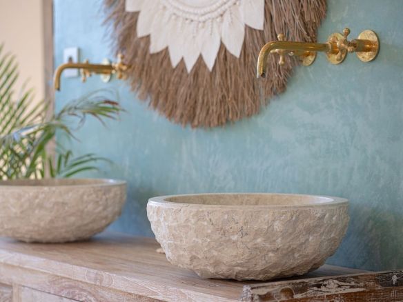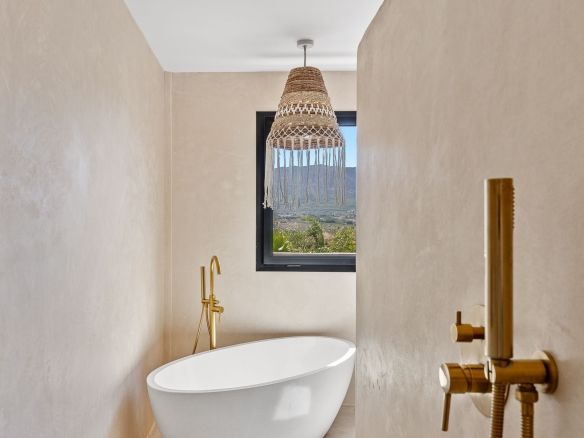 – Ground Floor Haven: Three exceptionally spacious bedrooms grace the ground floor, each accompanied by its own en-suite bathroom. Tadelakt finishing and imported handmade Moroccan taps add a touch of opulence to these private sanctuaries.