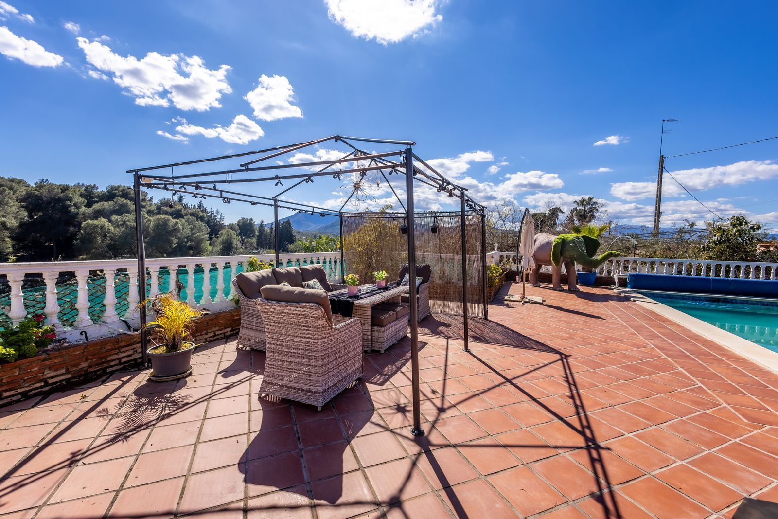 Located on the plot of nearly 5,000m2, there are several established areas of mature gardens coupled with an expansive orchard providing fruit trees, almonds, grapes, avocado’s and much more. In addition, there are a series of outbuildings suitable for keeping small livestock, for dog grooming, an artist studio, hobby room, tool or storage shed or whatever your heart desires.