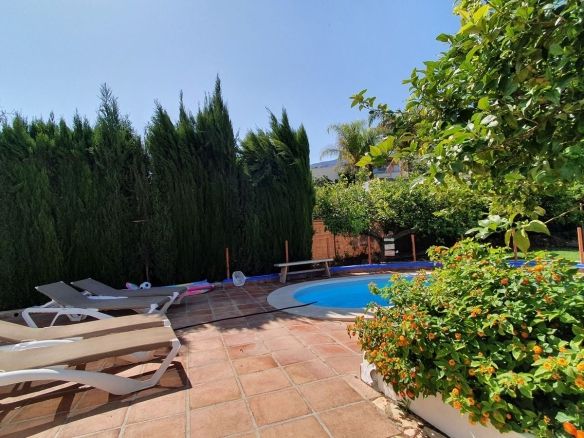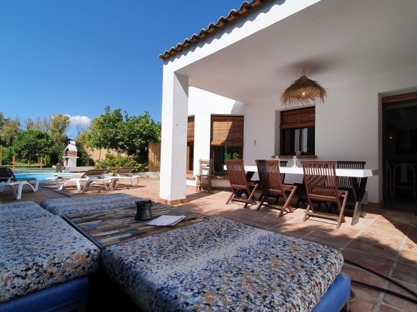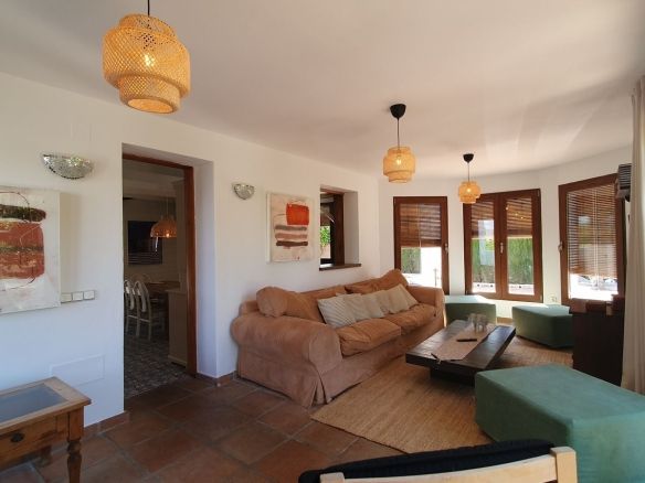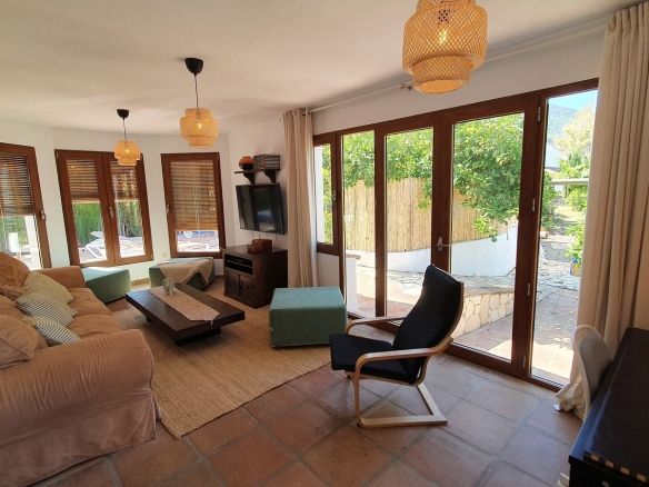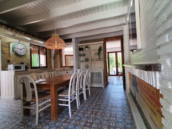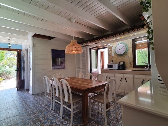 The second house features three bedrooms, two bathrooms, a large kitchen-dining area, and a beautiful living room that opens onto the pool. Additionally, it has terraces and a separate utility room.