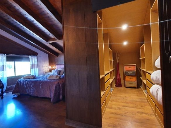 Furthermore, the property includes two independent apartments. One of them comprises two bedrooms and one bathroom, while the other has three bedrooms and two bathrooms.