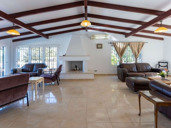 – A grand living and dining area with a feature fireplace, offering direct access through large French patio doors to the private pool and sun-drenched terrace.