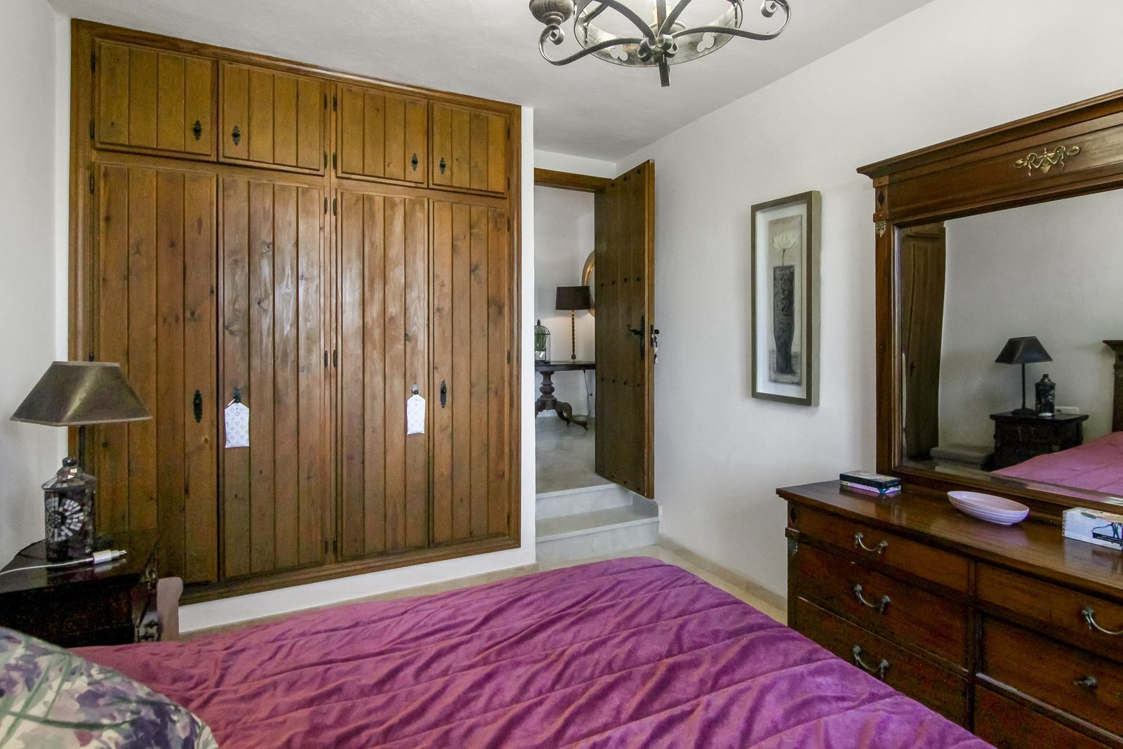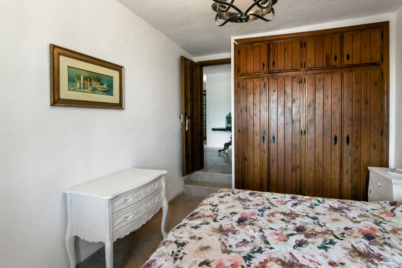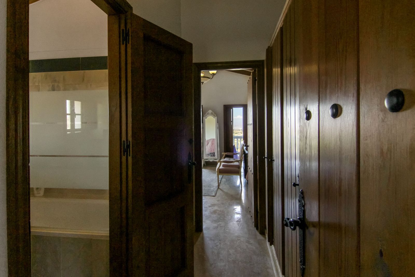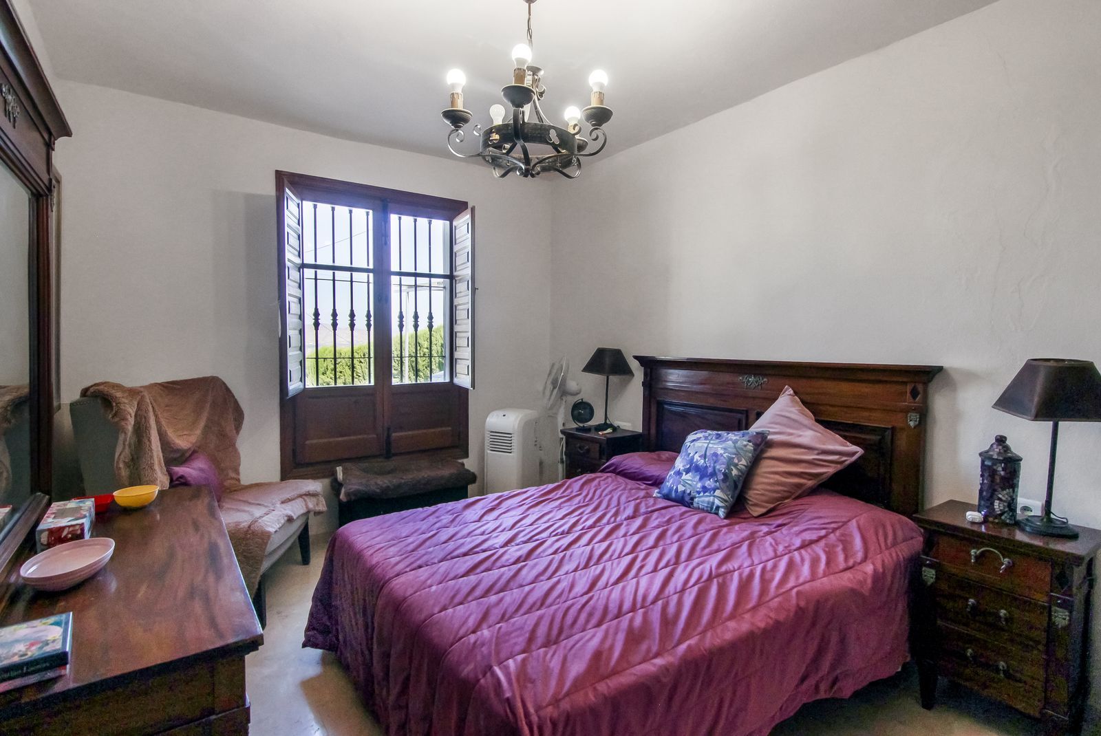 Living room is breathtaking, very spacious with high ceiling and big fireplace. Rustic style beautiful wooden framed windows, and indoor shutters, views to the countryside. There is plenty of natural light and access to the outdoor courtyard, from where you can also access the terrace. There is a potential and space to make overground pool. A lot of options for this idea.