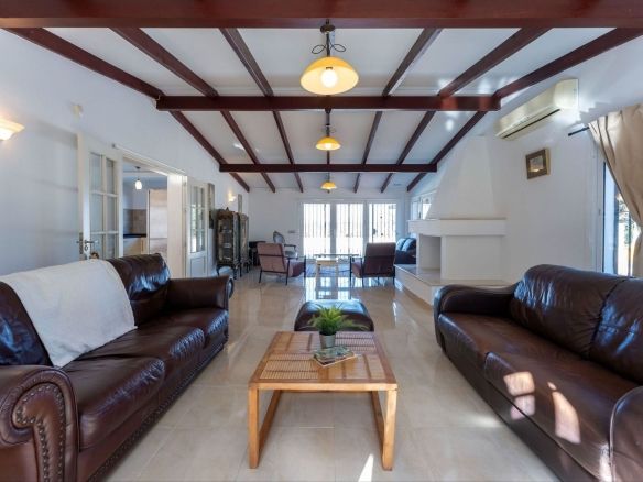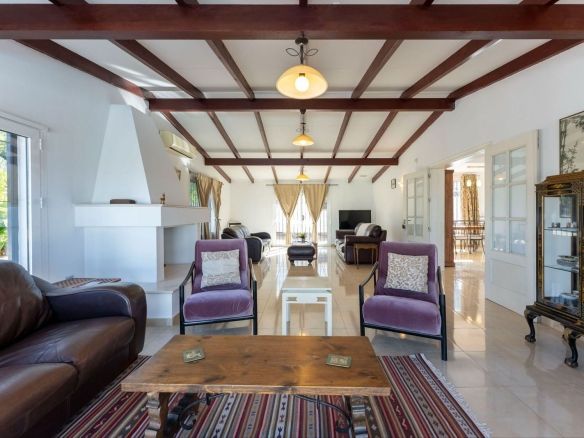 – A grand living and dining area with a feature fireplace, offering direct access through large French patio doors to the private pool and sun-drenched terrace.