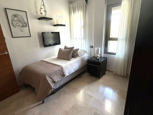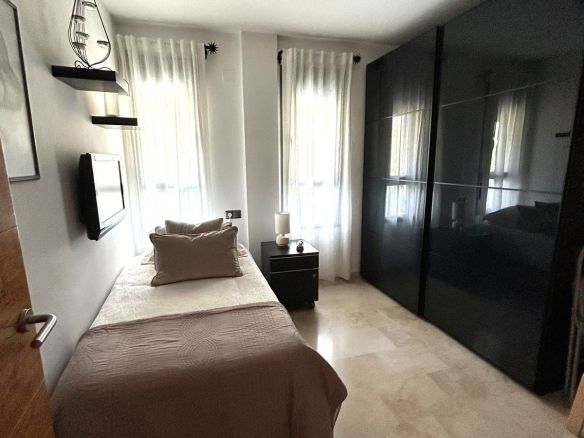 The apartment is sold furnished and comes with top-brand appliances, mainly Bosch and Balay. The built-in wardrobes are equipped with sliding shelves and various accessories, such as shoe and trouser racks.