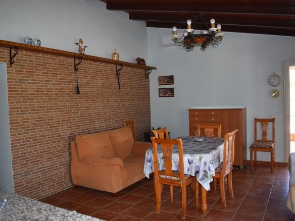 Upon entering the house we have a living-dining room with wooden beams and access to the terrace, a fitted kitchen, a large bedroom with a built-in wardrobe and a full bathroom, as well as a large room that could easily be converted into other bedrooms and a bathroom.Outside there is a large parking area, barbecue as well as 56m2 chicken coops ideal for stables. The plot is planted with a variety of fruit trees (walnut, fig, olive, orange, custard apple…), fully fenced and with its own well registered with the Junta.