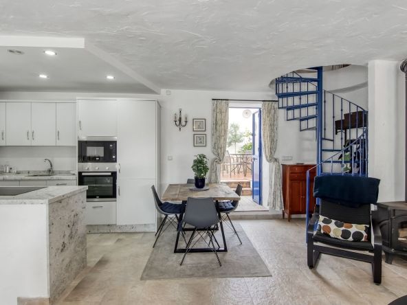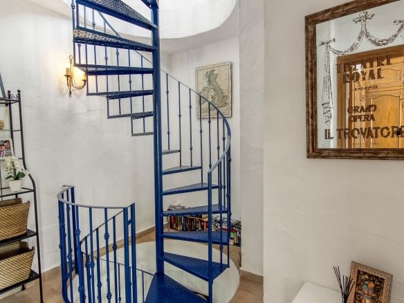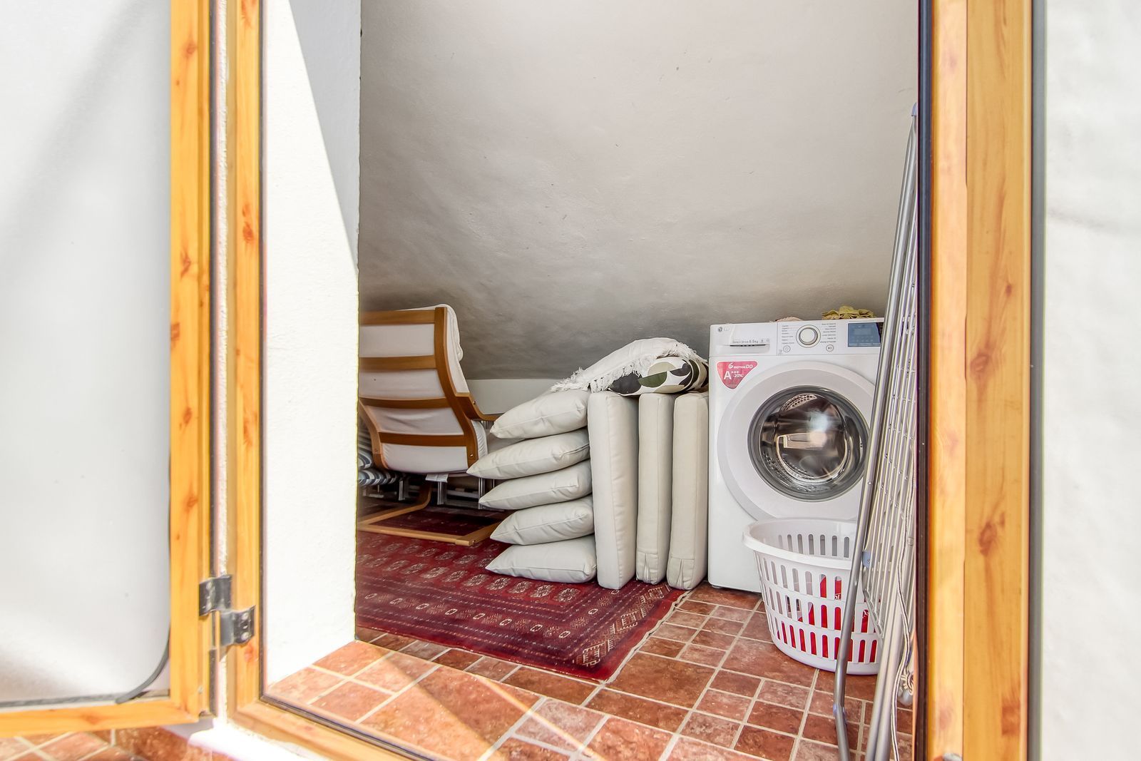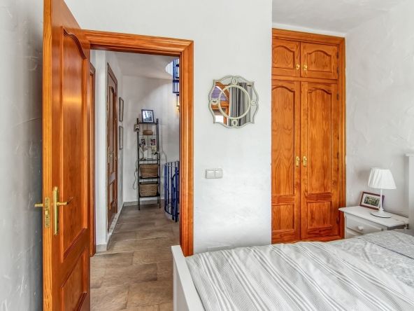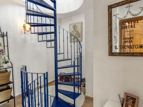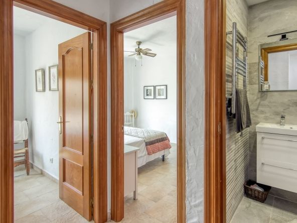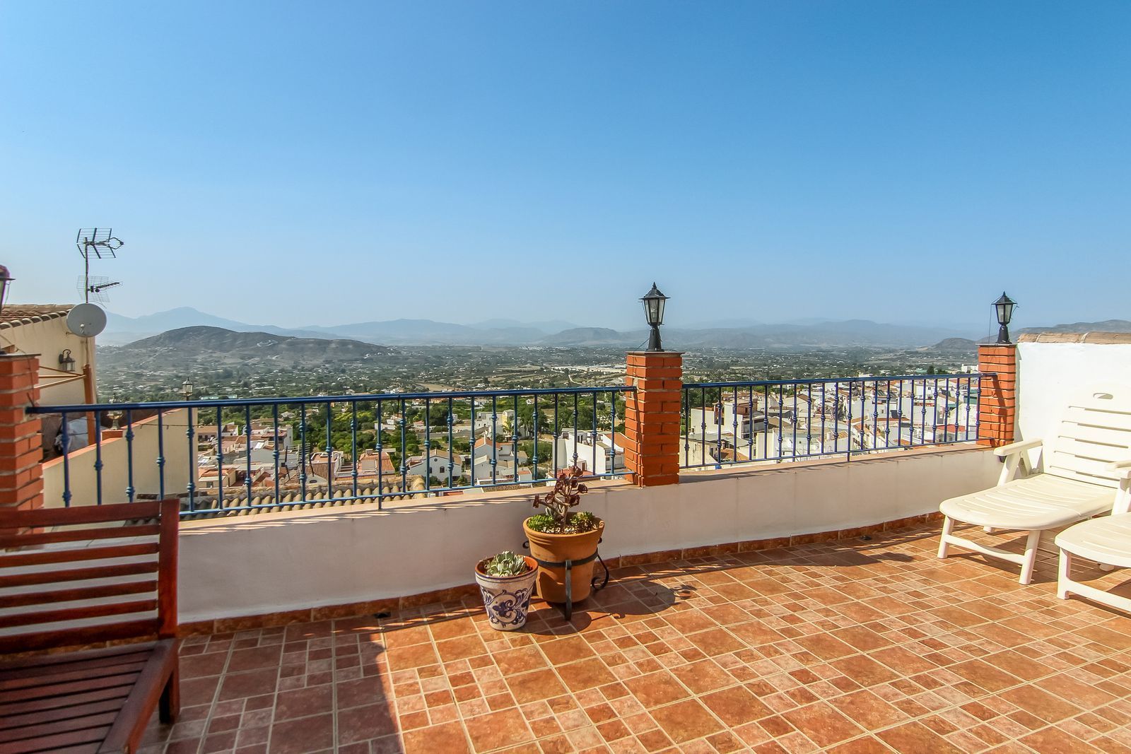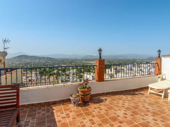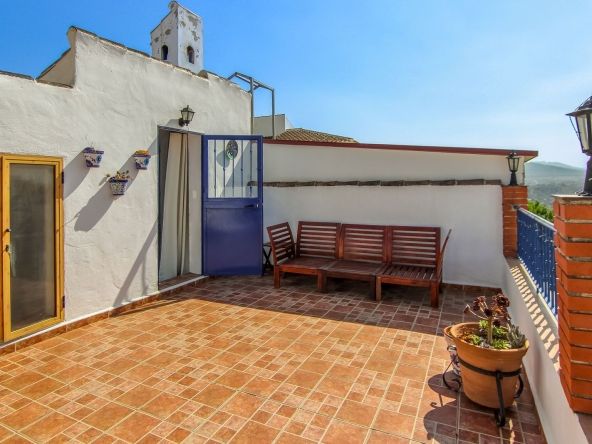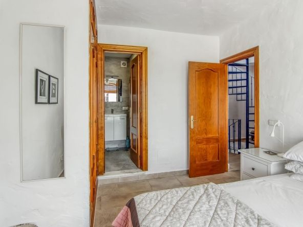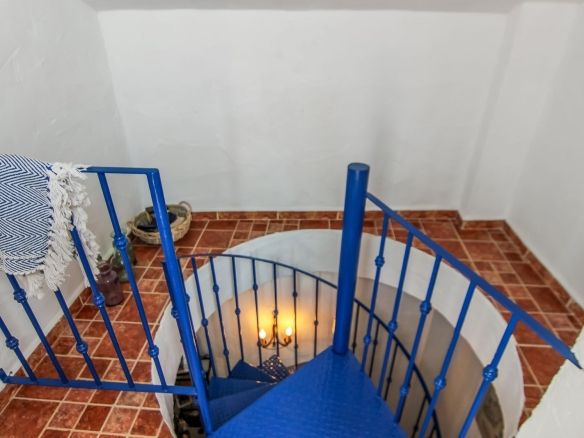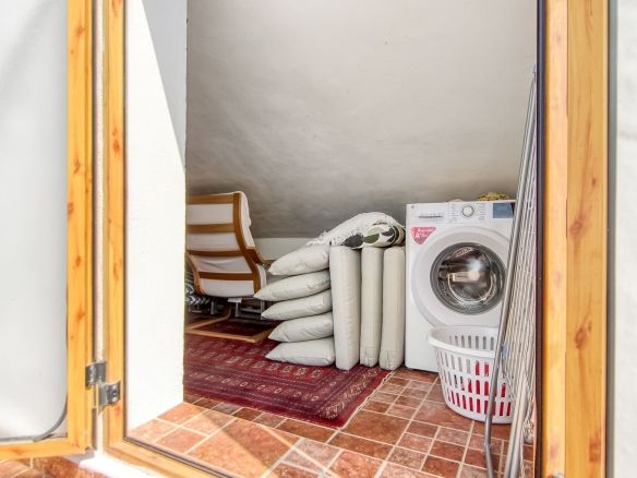 Spiral staircase takes you upstairs to the bedrooms and bathrooms. One floor more, and you enjoy your private roof terrace with amazing Guadalhorce Valley and pueblo views. Very practical utility/storage room on the roof terrace with washing machine.