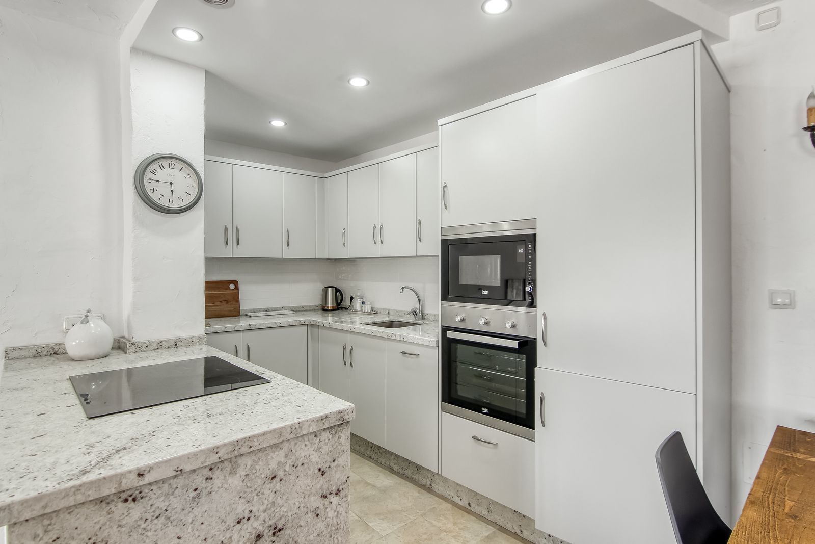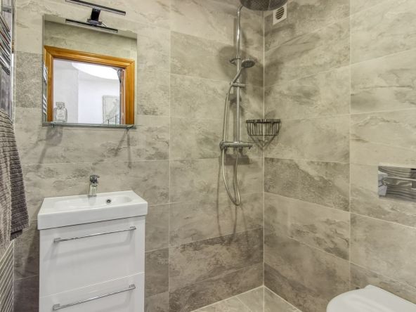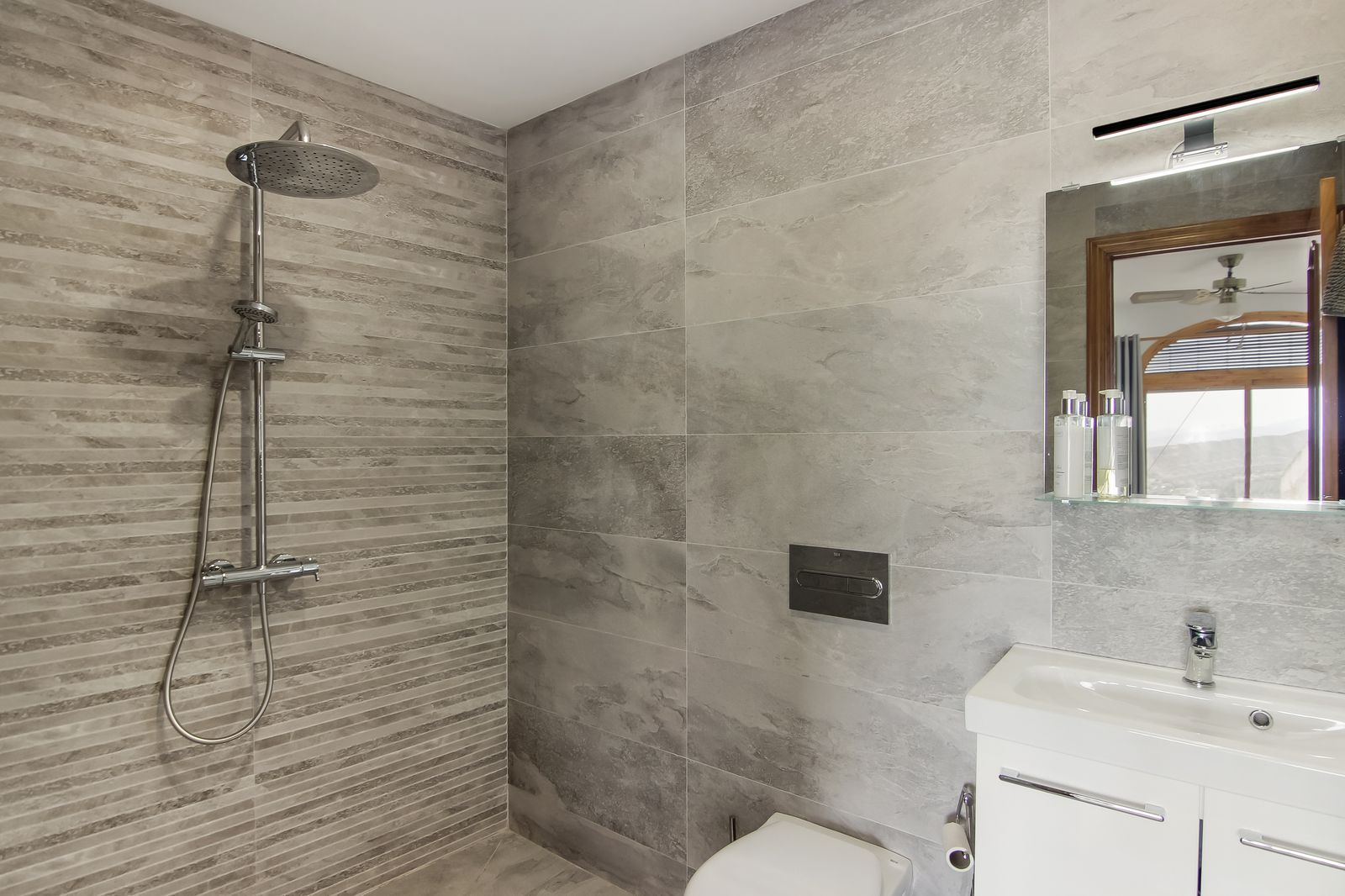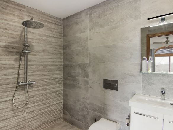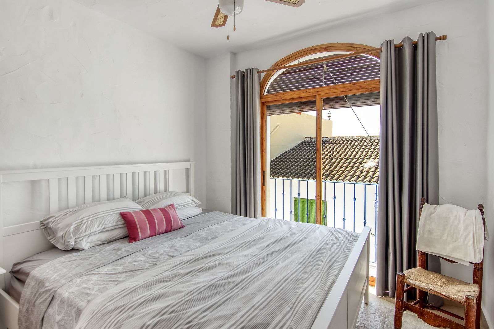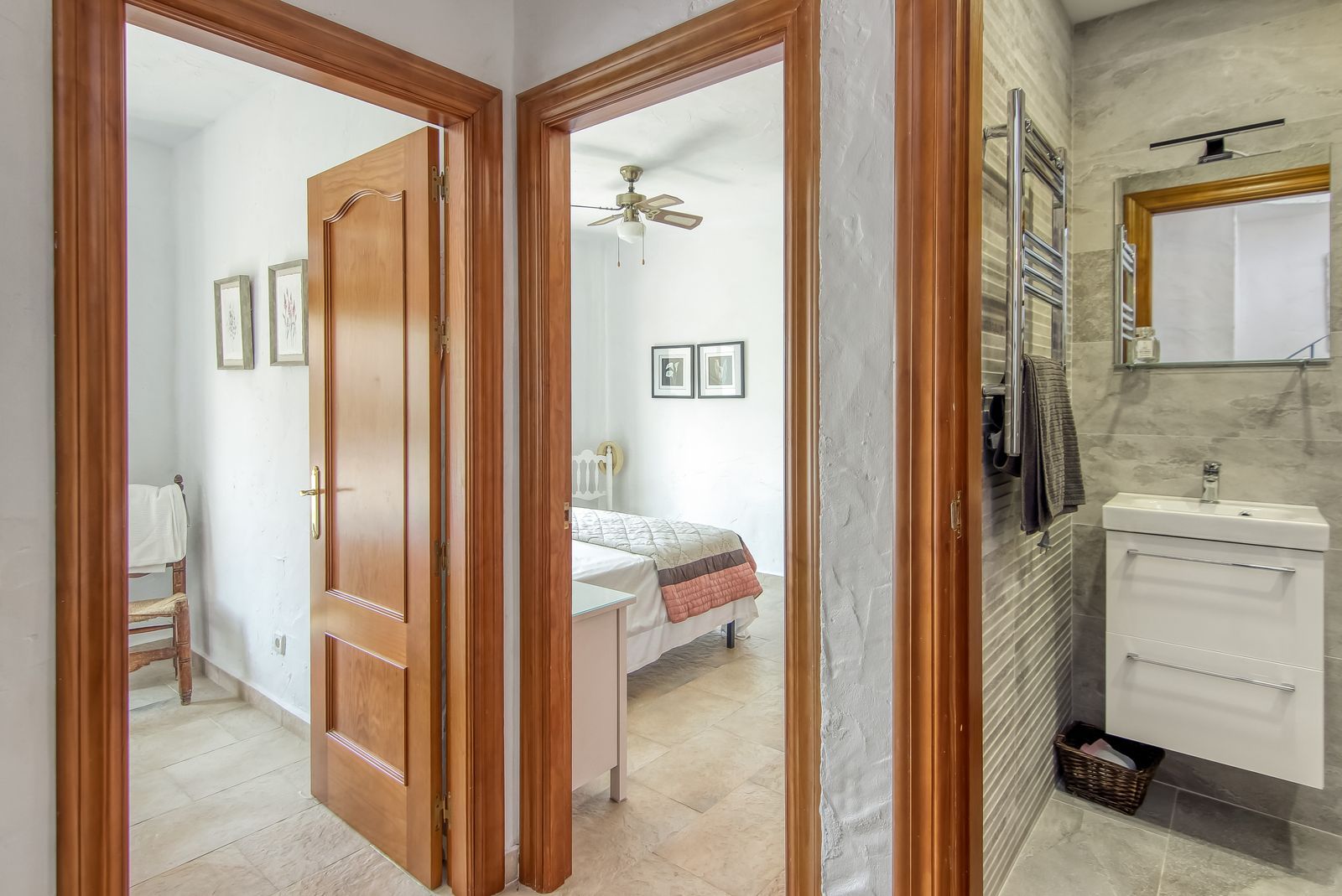 Spiral staircase takes you upstairs to the bedrooms and bathrooms. One floor more, and you enjoy your private roof terrace with amazing Guadalhorce Valley and pueblo views. Very practical utility/storage room on the roof terrace with washing machine.