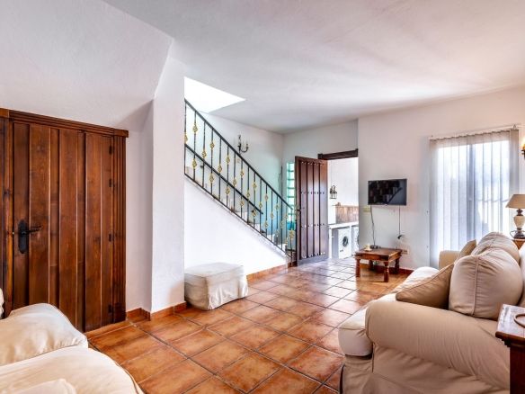 The villa comprises of four bedrooms and three bathrooms, there is plentiful storage, traditional features and touches throughout. On entering the property there is a wide entrance hallway, leading straight into the family, open plan lounge-dining room with the most incredible vaulted ceilings, showcasing views from the large, double framed windows. On this level you will find two rather large bedrooms, a family bathroom and fully equipped kitchen.