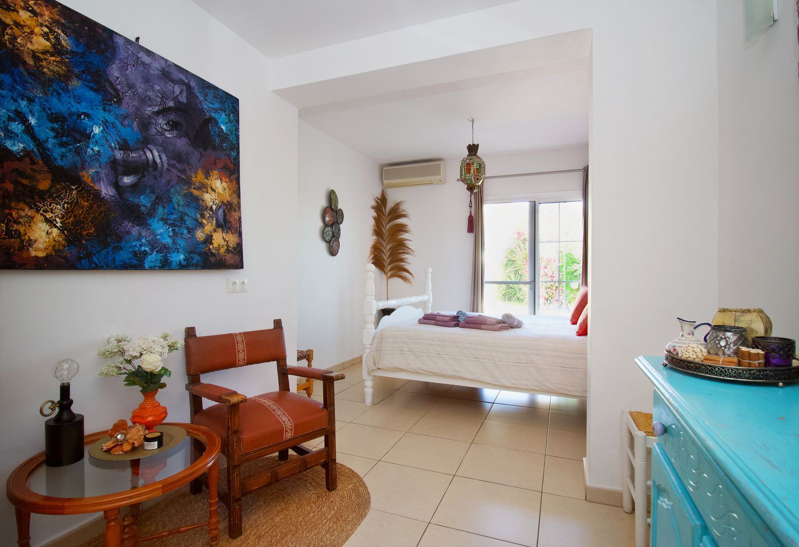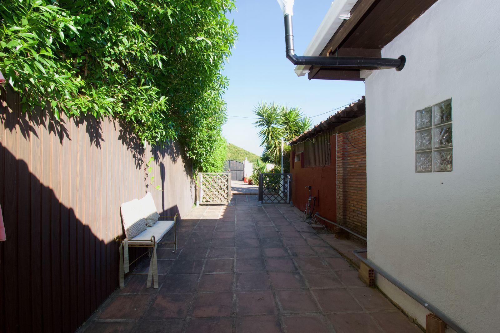 The single-story building was designed with rental optimization and the guest experience in mind. It features two master bedrooms with separate entrances from the garden, each with en-suite bathrooms, plus a third bedroom in the main house. It also features a separate studio with a bedroom, en-suite bathroom, kitchen, and separate living room, ideal for additional accommodation or exclusive services. A very private porch completes the whole experience, allowing guests to perfectly enjoy the surroundings.