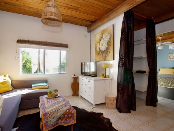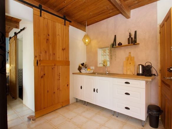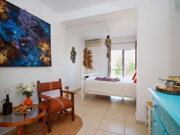 The single-story building was designed with rental optimization and the guest experience in mind. It features two master bedrooms with separate entrances from the garden, each with en-suite bathrooms, plus a third bedroom in the main house. It also features a separate studio with a bedroom, en-suite bathroom, kitchen, and separate living room, ideal for additional accommodation or exclusive services. A very private porch completes the whole experience, allowing guests to perfectly enjoy the surroundings.