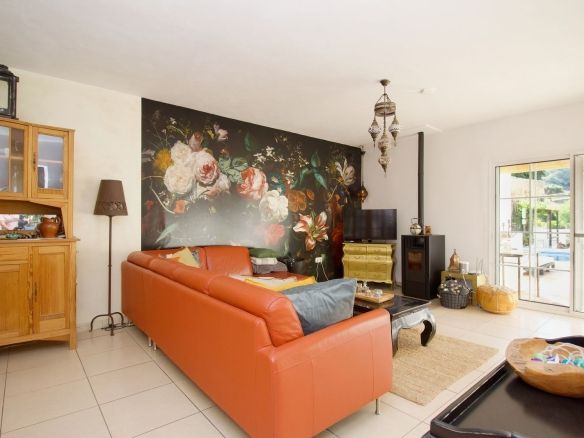 The outdoor area is a true oasis: a southeast-facing pool, a hot tub, and several terraces for sunbathing, relaxing, and admiring the breathtaking views. The garden is landscaped to provide a corner for reading or relaxing. Various tree species grow on the property, including citrus, lemon, and orange trees, creating a natural and inviting atmosphere that delights visitors. The property also features parking for several cars and a storage room for additional household items, simplifying management and ensuring guest comfort.