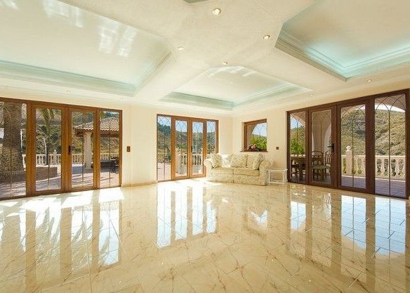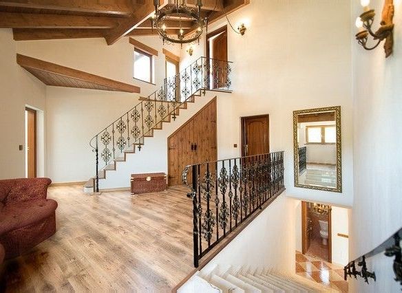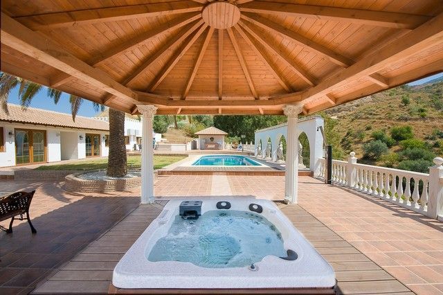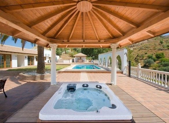 The spacious villa is ideal for entertaining yet maintains an intimate warm atmosphere.The house is surrounded by 62,000 square metres (15 acres) of rustic woodland in an exclusive, secluded valley with magnificent views of the mountains. A natural winding spring veins through the depth of the grounds. The area is perfect for horse riding and there is a stable block and paddock available.