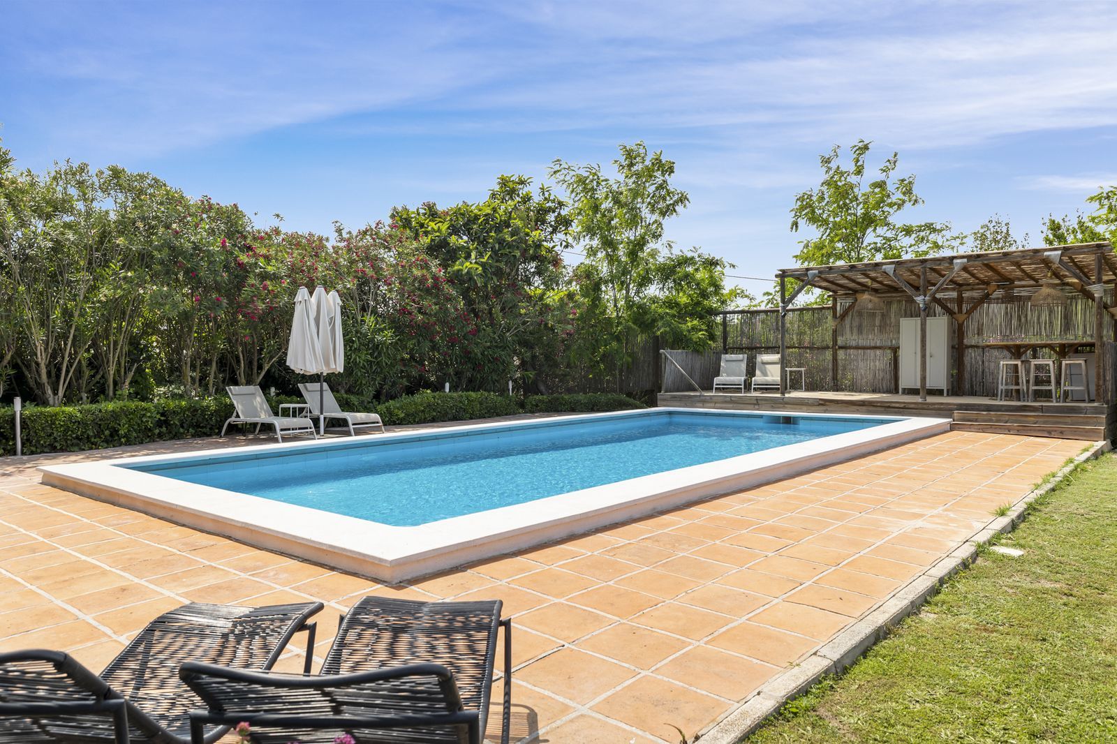 The main villa boasts three spacious bedrooms, each with its own bathroom, ensuring privacy and comfort for the entire family. Large windows throughout the home flood the interiors with natural light, offering breathtaking views of the surrounding landscape and enhancing the warm and inviting ambiance. Next to the living area we find the semi open kitchen and utility room provide both functionality and convenience. Attached to the side of the house we find a dedicated office space offers the perfect environment for remote work or creative pursuits.