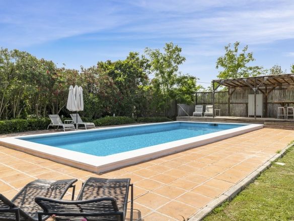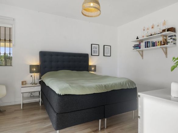 The main villa boasts three spacious bedrooms, each with its own bathroom, ensuring privacy and comfort for the entire family. Large windows throughout the home flood the interiors with natural light, offering breathtaking views of the surrounding landscape and enhancing the warm and inviting ambiance. Next to the living area we find the semi open kitchen and utility room provide both functionality and convenience. Attached to the side of the house we find a dedicated office space offers the perfect environment for remote work or creative pursuits.