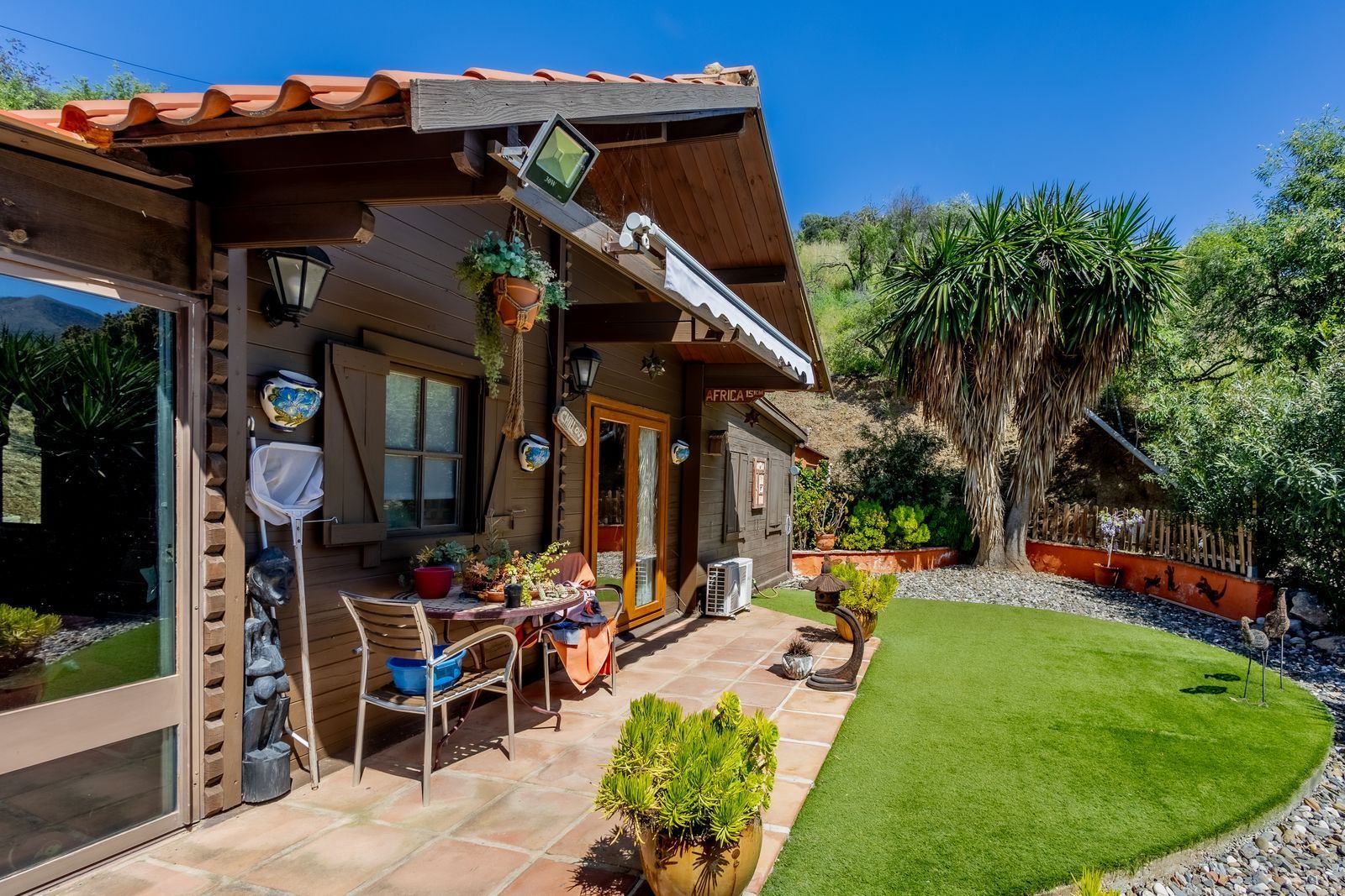 – Two-bedroom owners’ bungalow with parking area, garden and dining terrace