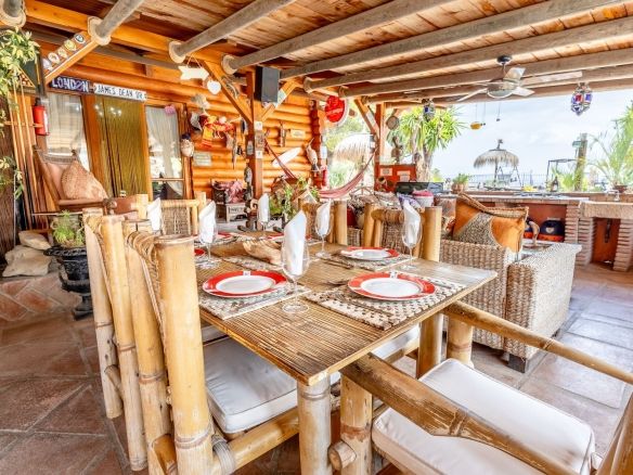 – Two-bedroom owners’ bungalow with parking area, garden and dining terrace