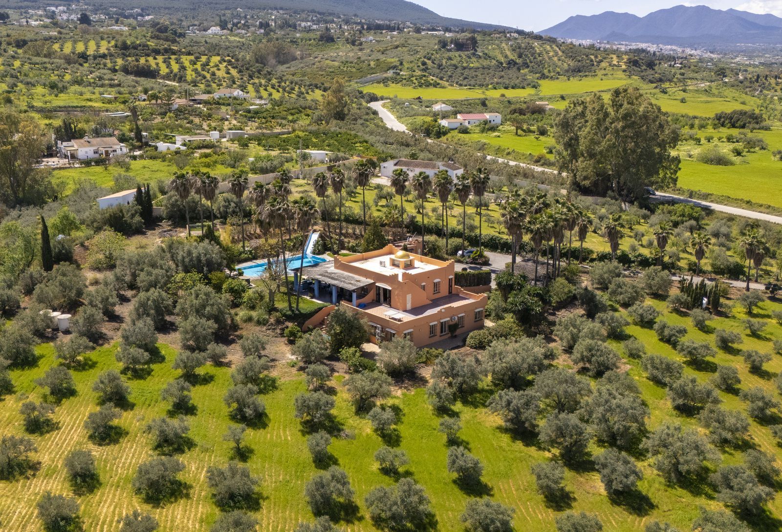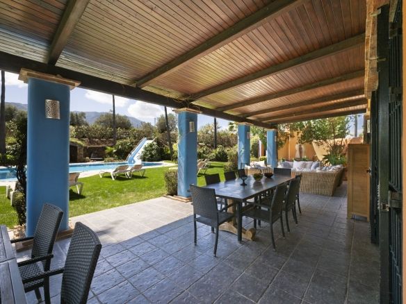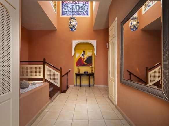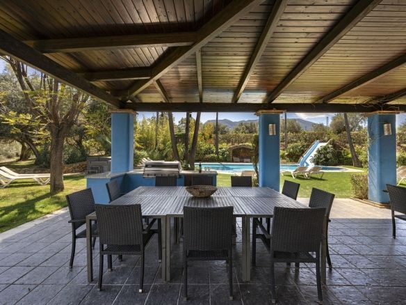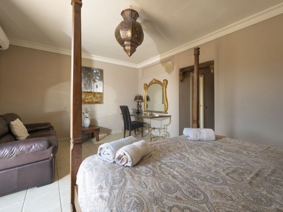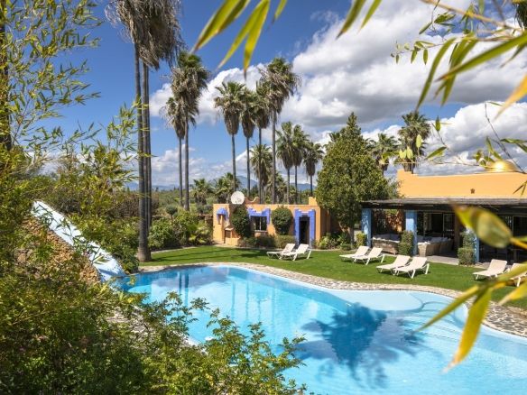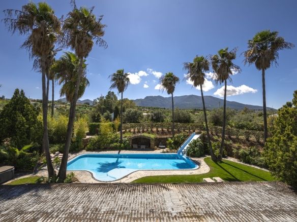 On the same level as the lounge is the large master air-conditioned bedroom which has views across the olive groves. This bedroom also has direct access to the terraces & pool areas. Next to the master bedroom we have a lovely a twin bedroom. Downstairs we have 6 bedrooms all benefit from air-conditioning (3 x twins, 2 of which have an en suite bath and separate walk-in shower room and 3 x doubles with en suite walk-in shower).What makes this property extra special is the outside area. the pool which is directly in front of the veranda is incredible and has its own water-slide built into the tropical garden. The house is surrounded by a large covered terrace which in the summer acts as an alfresco living room plus a modern BBQ also situated close to the pool. Finally we have to mention the The Moroccan Suite: This lovely Moroccan just a few meters from the main house and overlooks the pool & gardens. This air-conditioned room has a double bed with a en suite walk-in shower room. Also plenty of space for parking and majestic driveway to the entrance of the property. A unique property not to be missed.