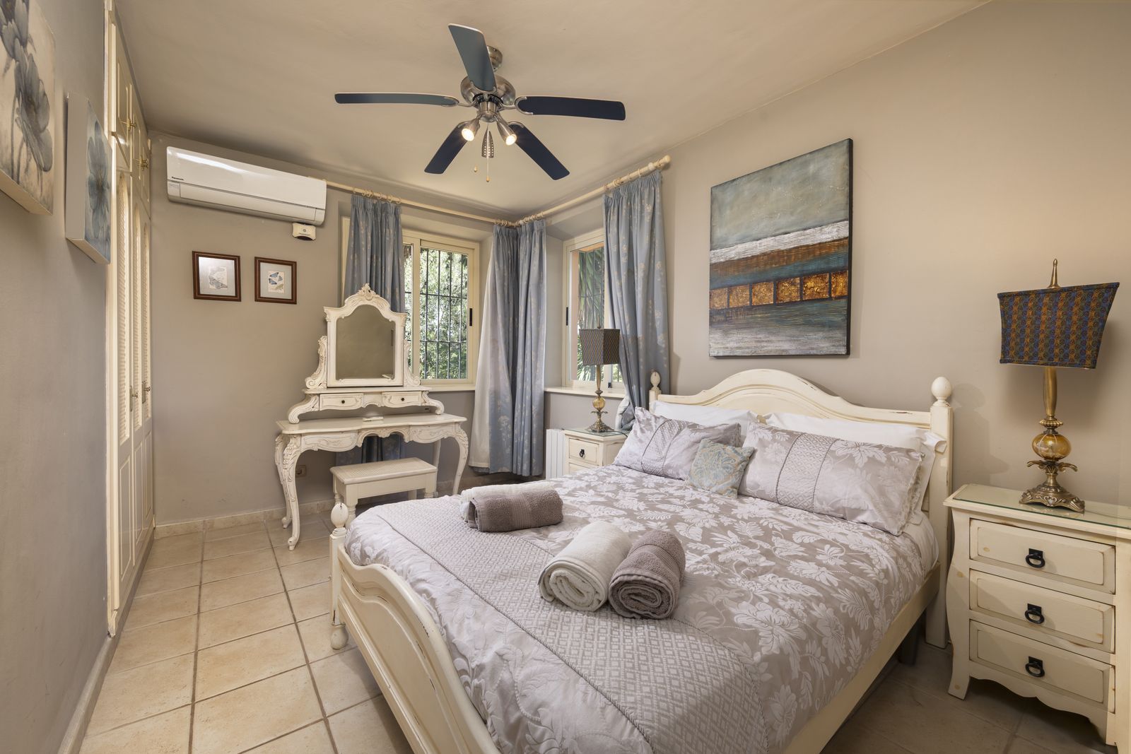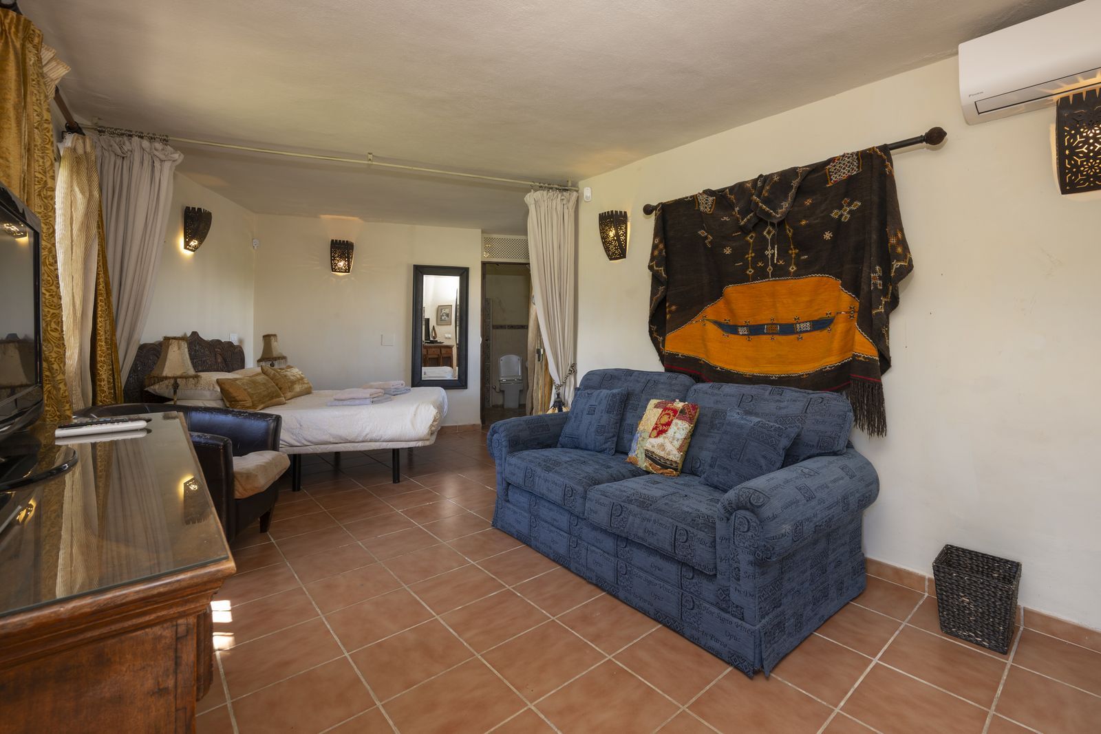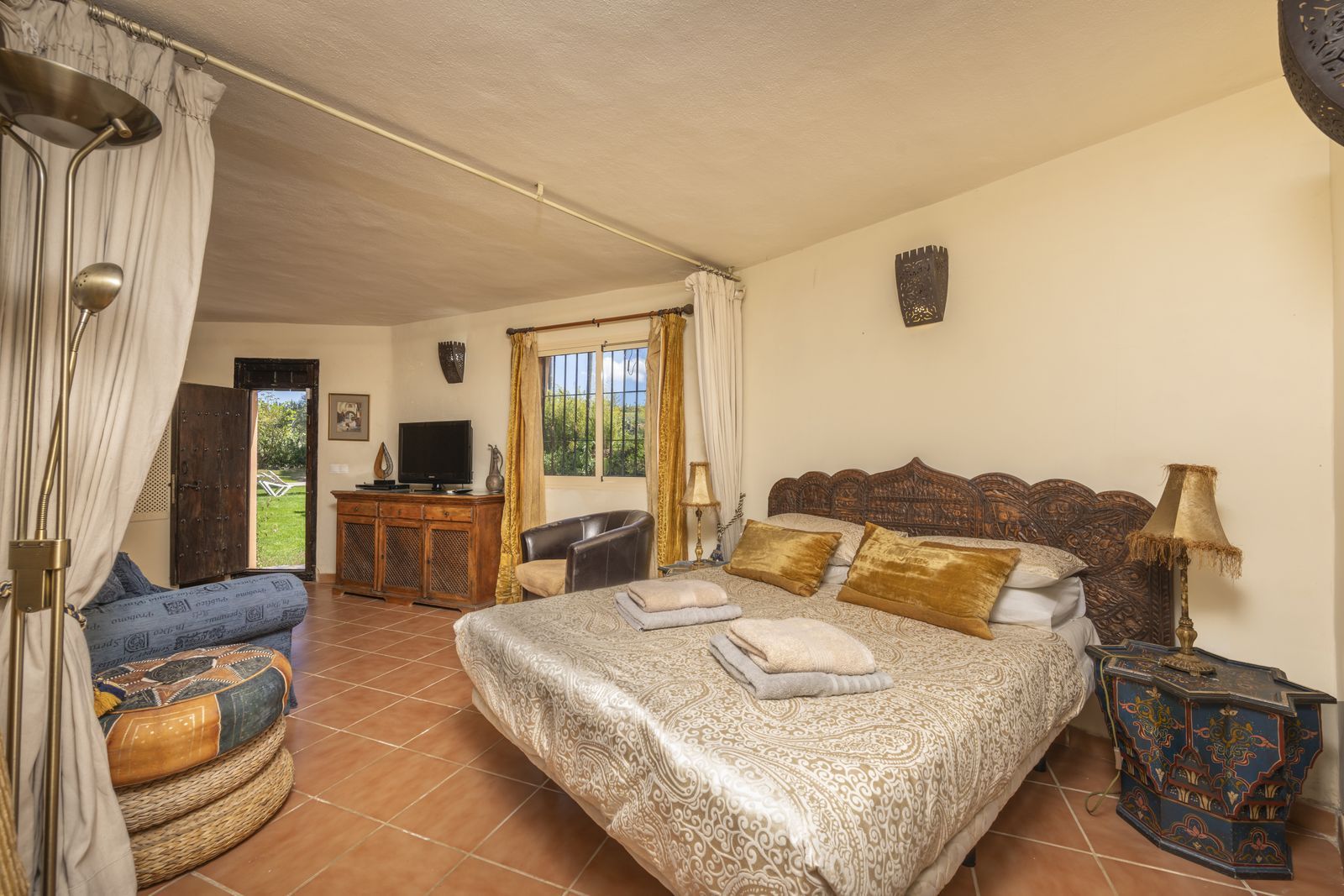 On the same level as the lounge is the large master air-conditioned bedroom which has views across the olive groves. This bedroom also has direct access to the terraces & pool areas. Next to the master bedroom we have a lovely a twin bedroom. Downstairs we have 6 bedrooms all benefit from air-conditioning (3 x twins, 2 of which have an en suite bath and separate walk-in shower room and 3 x doubles with en suite walk-in shower).What makes this property extra special is the outside area. the pool which is directly in front of the veranda is incredible and has its own water-slide built into the tropical garden. The house is surrounded by a large covered terrace which in the summer acts as an alfresco living room plus a modern BBQ also situated close to the pool. Finally we have to mention the The Moroccan Suite: This lovely Moroccan just a few meters from the main house and overlooks the pool & gardens. This air-conditioned room has a double bed with a en suite walk-in shower room. Also plenty of space for parking and majestic driveway to the entrance of the property. A unique property not to be missed.