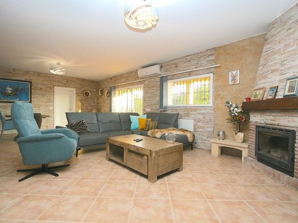 The second villa, with a built area of 177 square meters, is thoughtfully designed on a single level—ideal for ease of access and everyday living. It offers a warm and welcoming ambiance with a cozy living-dining area complete with a fireplace, a generous kitchen, four bedrooms, and two bathrooms.