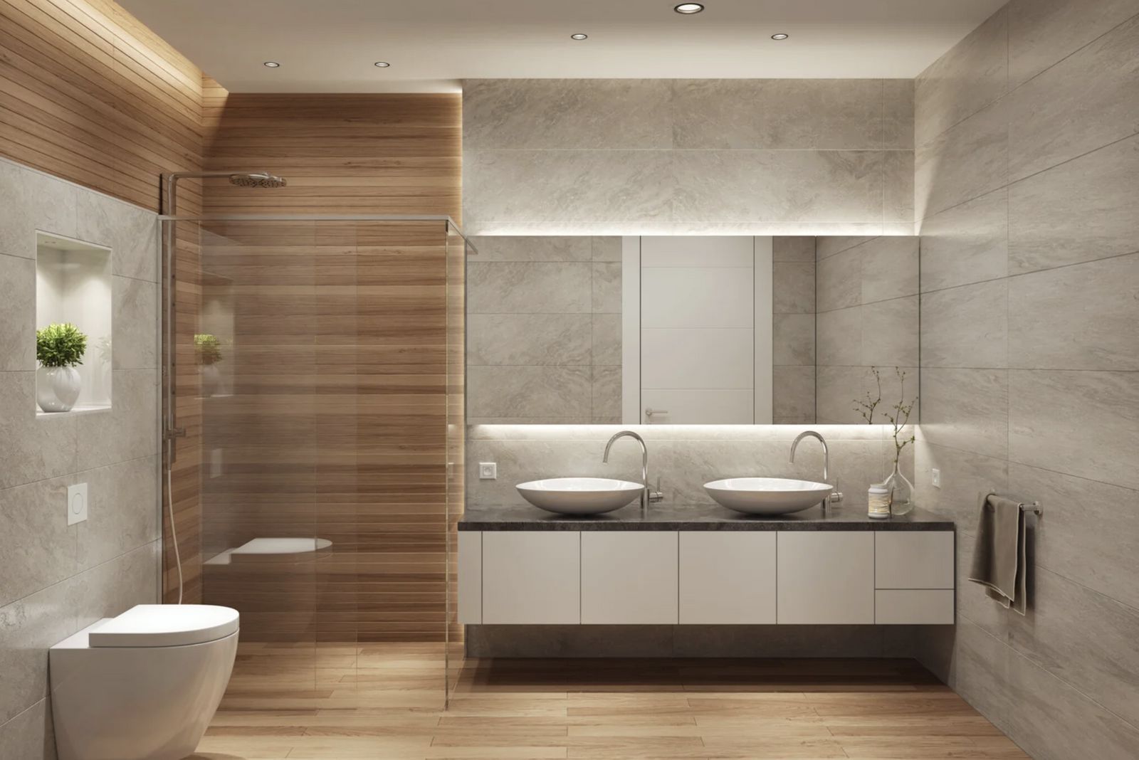 – Bathroom walls with COVERLAM plates (GRESPANIA) 2700X1200 (Color to choose)