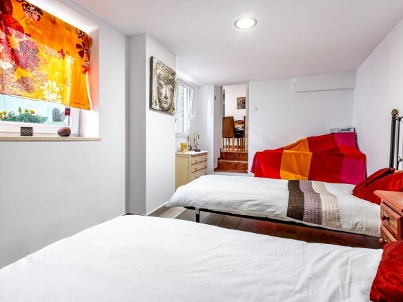 With direct street access, on opening the front door you are greeted with a large, open plan kitchen, dining and lounge area with additional space for a home office. The kitchen leads to a courtyard garden with it’s own outside toilet / washroom and a separate, super sized and large, utility room. The latter could be turned into an outside workshop, hobby room, office or left as is.