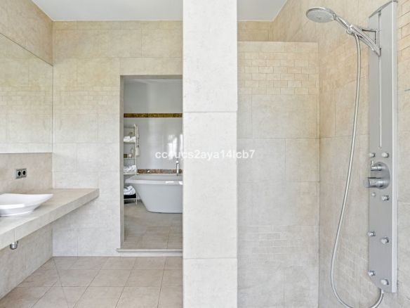 Upstairs, the first bedroom includes a mezzanine level and an en suite bathroom. The second bedroom features a private terrace with stunning views, also with a mezzanine and en suite. The master bedroom is truly expansive, offering wonderful vistas, a luxurious en suite with both bath and shower, and a vast walk-in wardrobe. This wardrobe area could also be converted into another bedroom with its own separate access if desired.