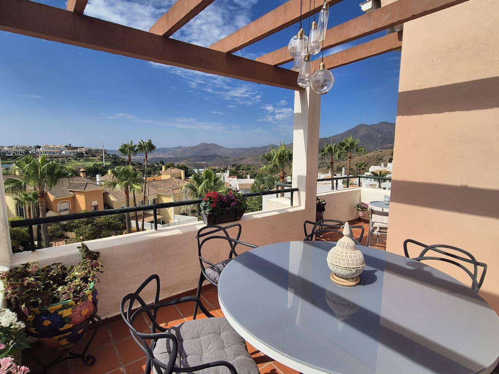 Fantastic corner duplex penthouse apartment for sale in Pueblo Andaluz with amazing views of Alhaurín Golf and surrounding mountains.