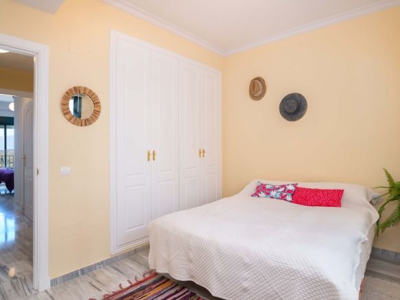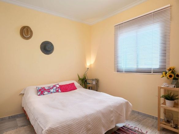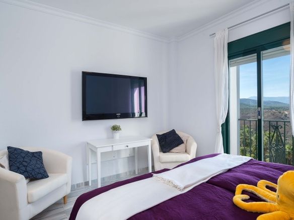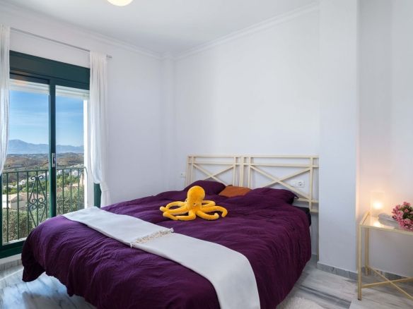 You enter the apartment via a hallway, to your right you have the fully equipped kitchen, with a new washing machine and a new boiler. Straight on you enter into the spacious and light living / dining room. In this living room you will see the quality of the furniture as well as the views that you have from the terrace where you have sun from about 14.00h until sunset. Can you imagine the beautiful sunsets you will see here! From the living room you go into a smaller corridor and this leads to the guest bathroom and second bedroom as well as to the left the master bedroom with your own en suite bathroom, where you have the same views to the mountains, from which you look miles away.