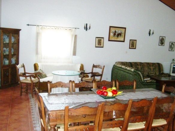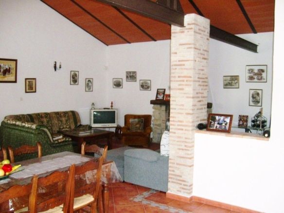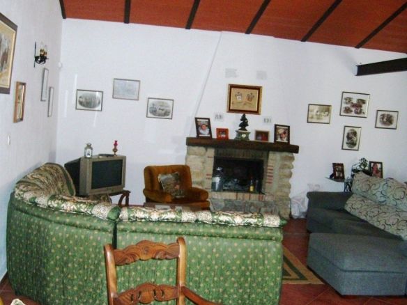743-V For sale a farm with a house of 150 m2, all on one level consisting of very spacious lounge/dining room with fireplace, fitted kitchen, 2 bedrooms, 2 bathrooms, pantry, storage room, terrace with views to the Guadalhorce Valley, has 200 000 m2 of fenced plot, perfect for people who loves quitness, nature. It is permited to have horses on the plot. This property has got the 'codigo gandero' and also the 'codigo de explotacion de caballos y toros' licenses which are very hard to get in order to make any profits with farming business. This property has been renovated with a new bullring and stable to breed an maintain horses which dont appear in pictures. There is a stream with water at the entrance of the property and has water and elecricity from the city and has also several private water wells. The farm is located near the centre of Alora and has excellent acces to main roads. The road is paved till the entrance of the property.