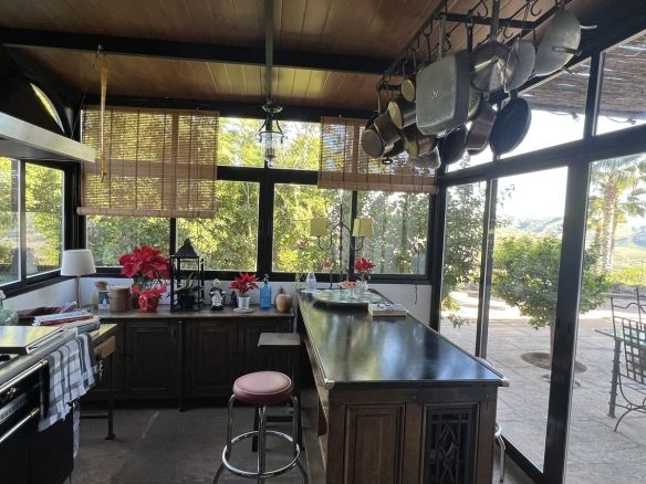 The kitchen, a true gem, is not only extremely well-equipped but also designed to delight culinary enthusiasts. It opens onto a bright veranda, set up as an outdoor kitchen, with large glass panels that can be opened or closed as desired, allowing you to enjoy meals in any season.