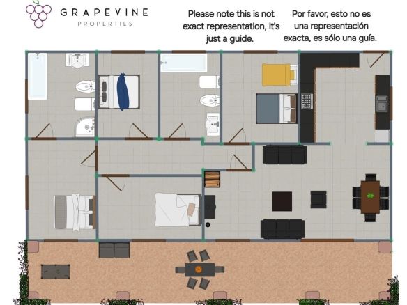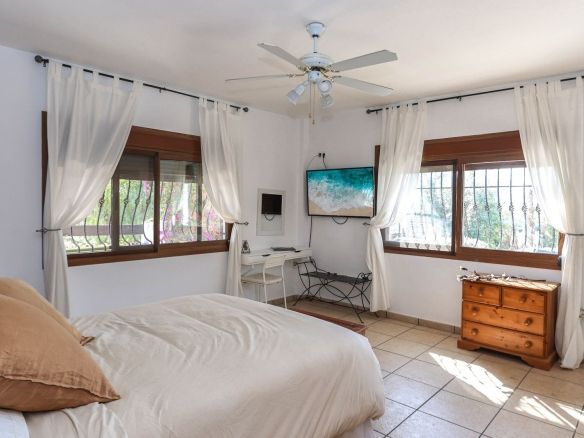 A shaded terrace runs along the rear of the property providing the much needed shade during the summer months. With music system, soft seating area and of course those lovely views this is the perfect spot to sit and relax. Patio doors lead from the terrace to the lounge… the perfect layout! From the lounge you have access to the fully fitted kitchen. The house boasts 4 large double bedrooms the master is especailly spacious and also has the luxury of an ensuite bathroom.