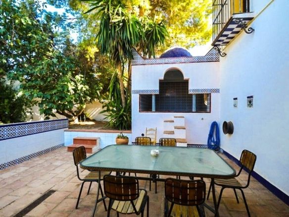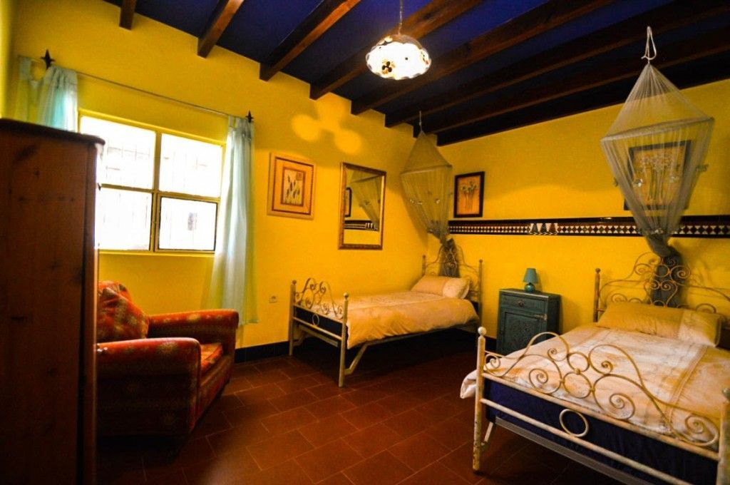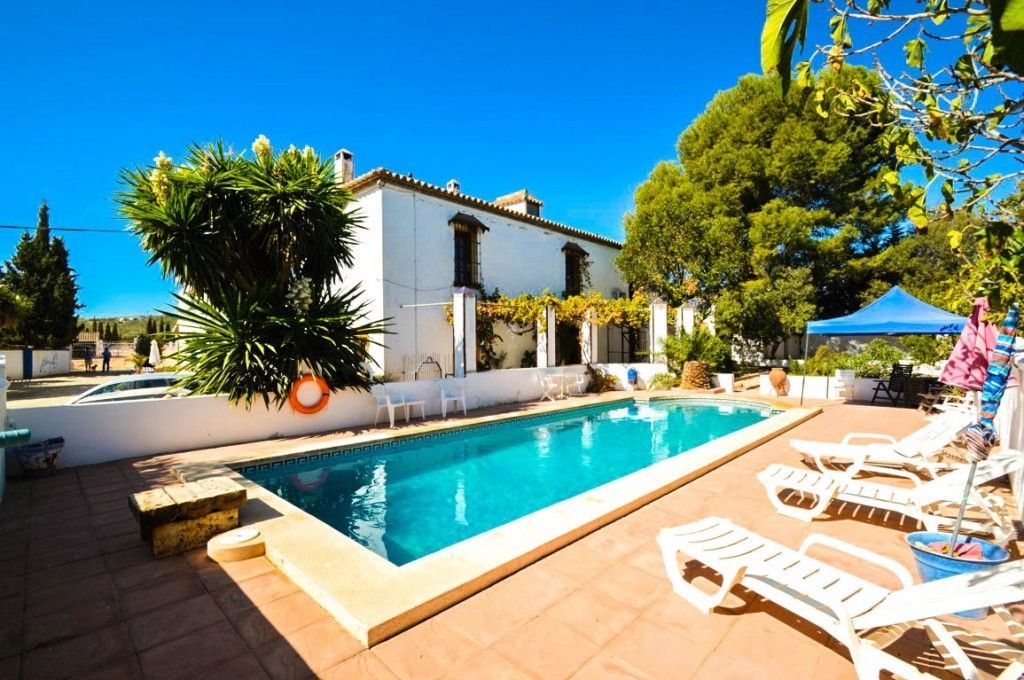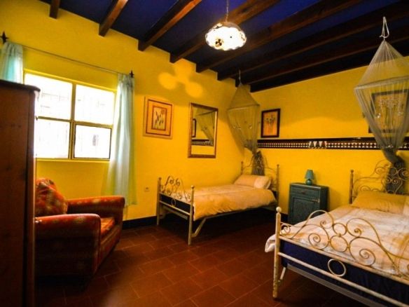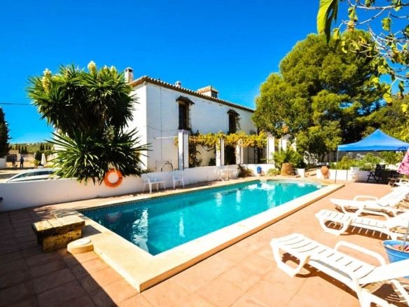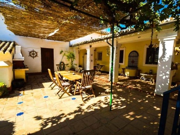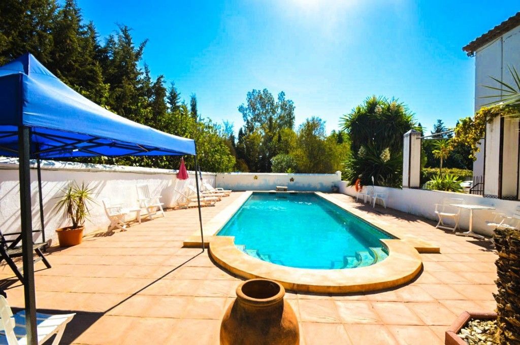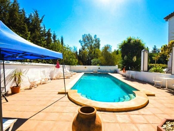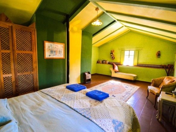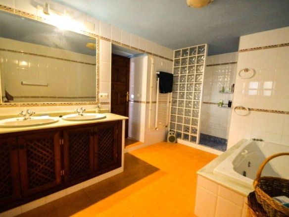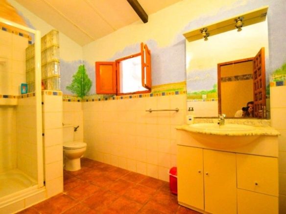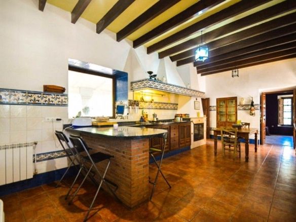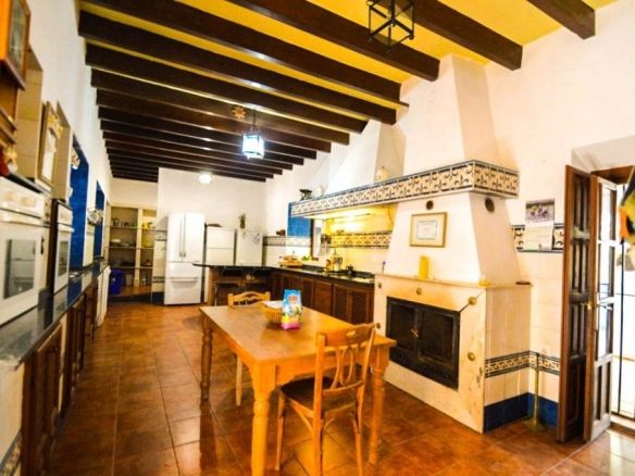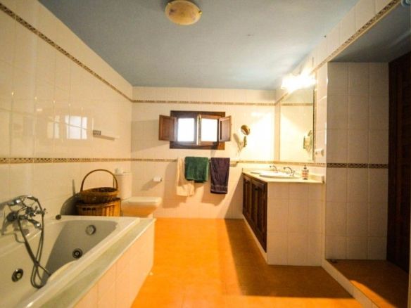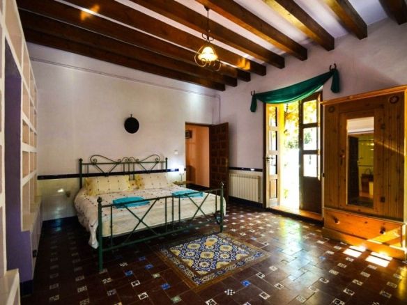 Main house: Entrance terrace with swimming pool, spacious hall entrance and 4 large bedrooms (2 with fireplaces) and 2 bathrooms. Beautiful and spacious fully equipped kitchen with dining table and pantry with access to the beautiful porch where there is a beautiful walled garden with areas to sit and Moroccan bath. Between the 2 accommodations there is a lovely patio with dining table, toilet and laundry area.