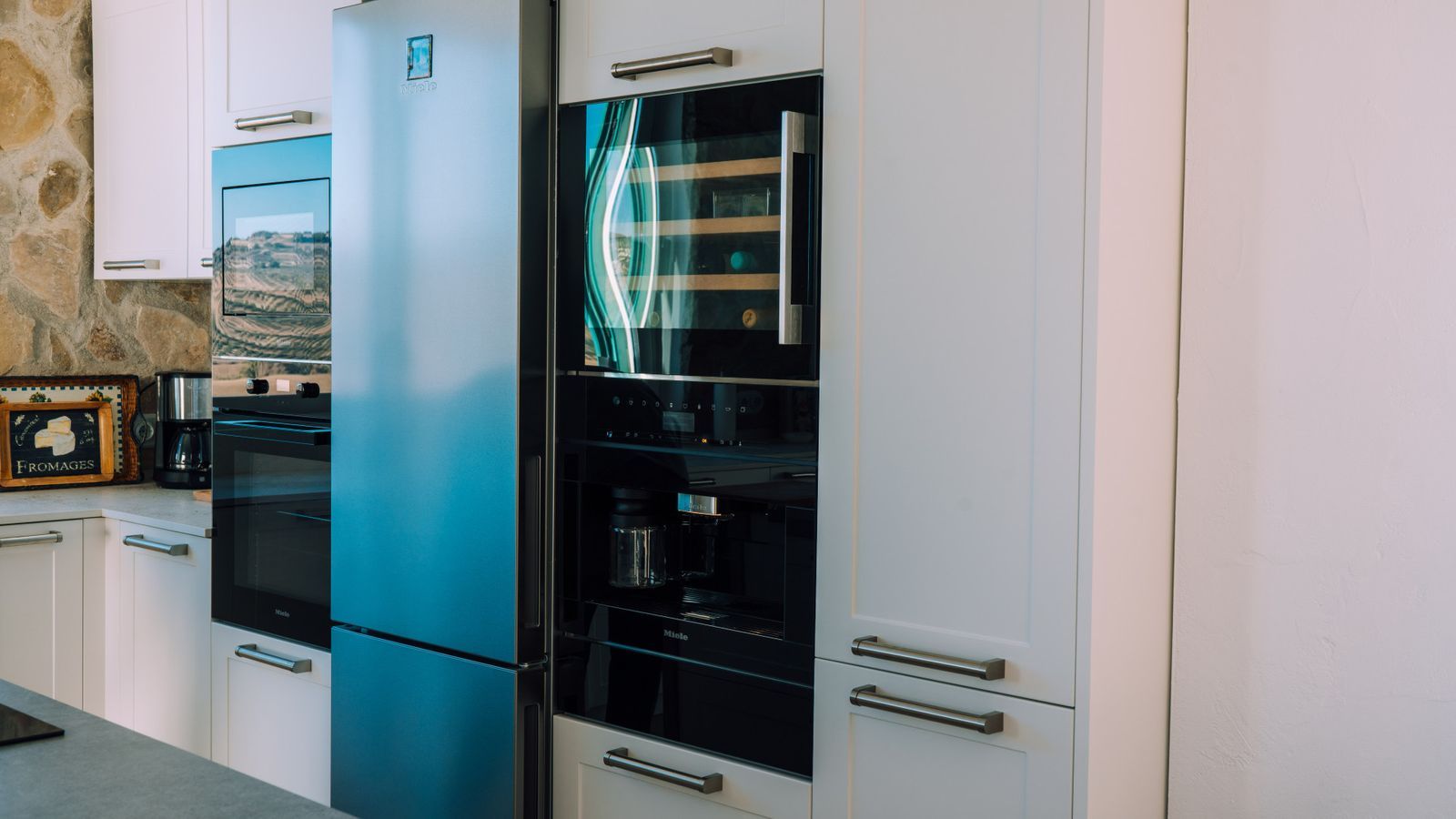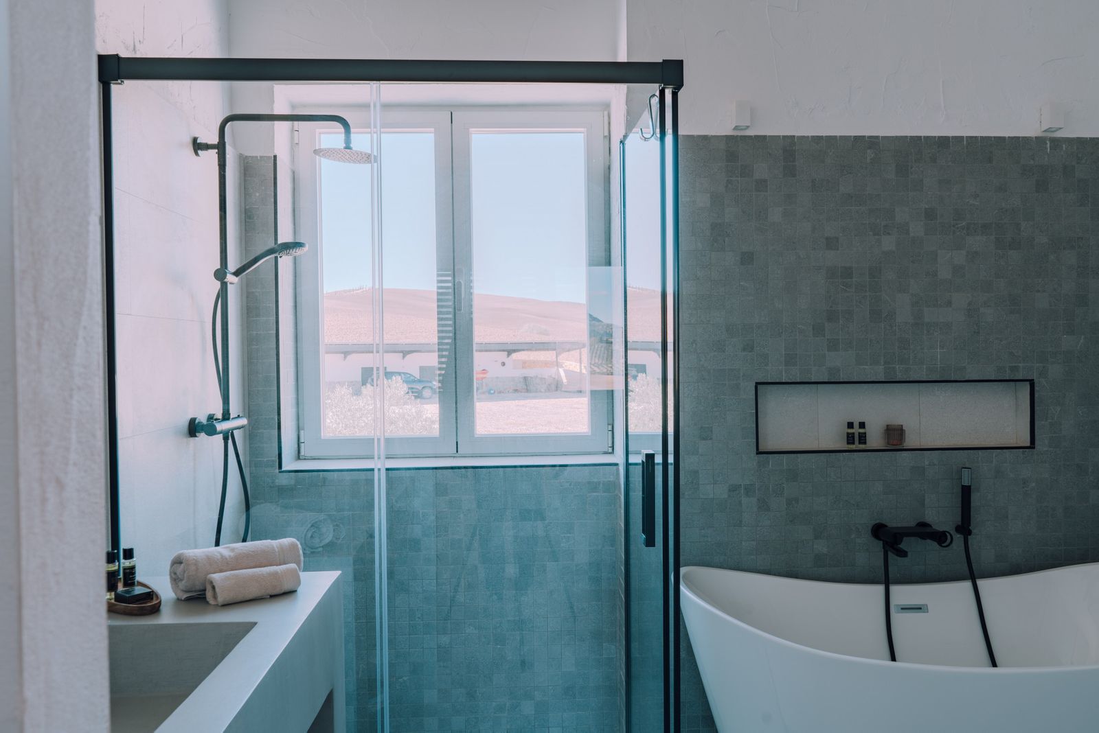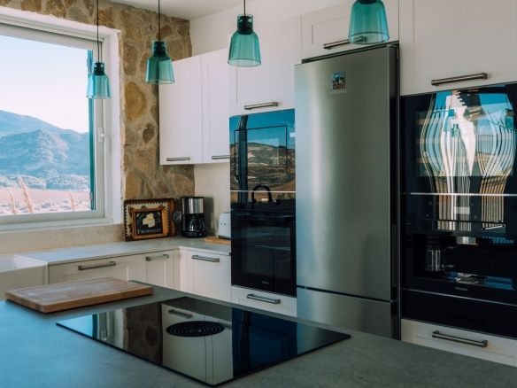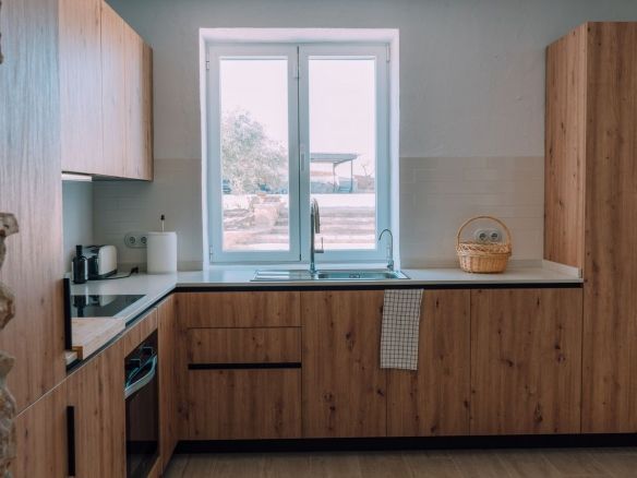 Outside you'll find a swimming pool, and the well-equipped property includes its own well and hydraulic pump for self-sufficient water supply and solar panels for electricity supply. While pockets of greenery are present, the vistas remain open and unrestricted, providing serenity and privacy.
