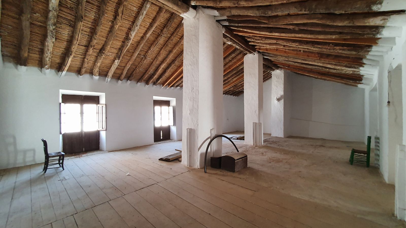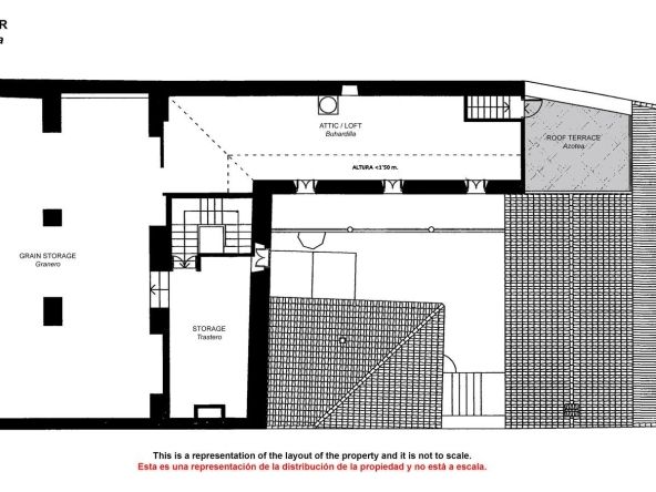 The property also features an old stable that could be converted into bedrooms or common areas. On the top floor, there is a spacious, open-plan attic, the former hayloft, offering the potential for more rooms and access to a terrace with spectacular views of the valley and the village.