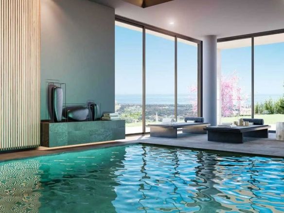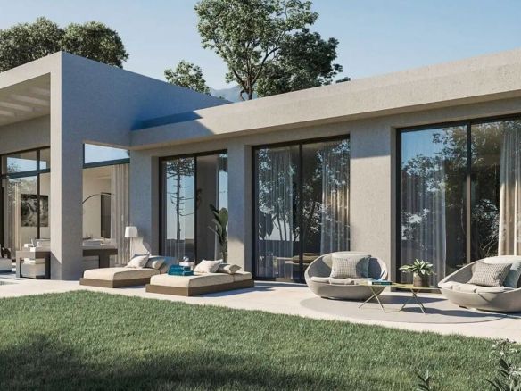 Introducing an exquisite, newly constructed villa nestled within a secure gated community, a mere five-minute drive from the town and beach. This opulent community features a club house, spa, gym, lush Mediterranean gardens, and breathtaking panoramic sea views.