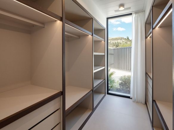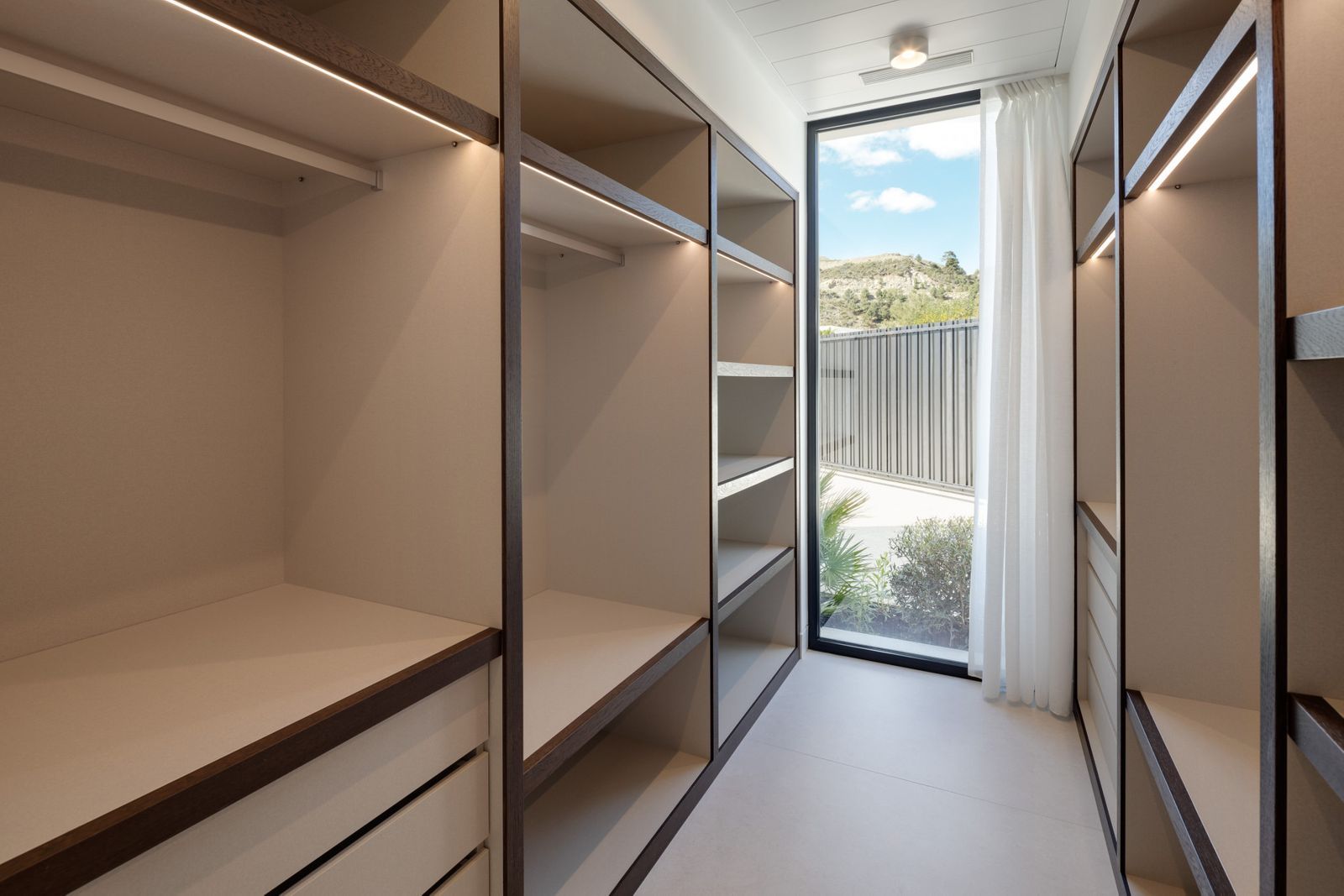 The ground floor is dedicated to refined living and entertainment, featuring a TV lounge, formal living area with an oversized fireplace, and a fully fitted Modulnova kitchen. A walk-in wine cellar enhances the dining experience, while the expansive outdoor terraces boast an al fresco kitchen, dining area, and an infinity pool overlooking the Mediterranean.
