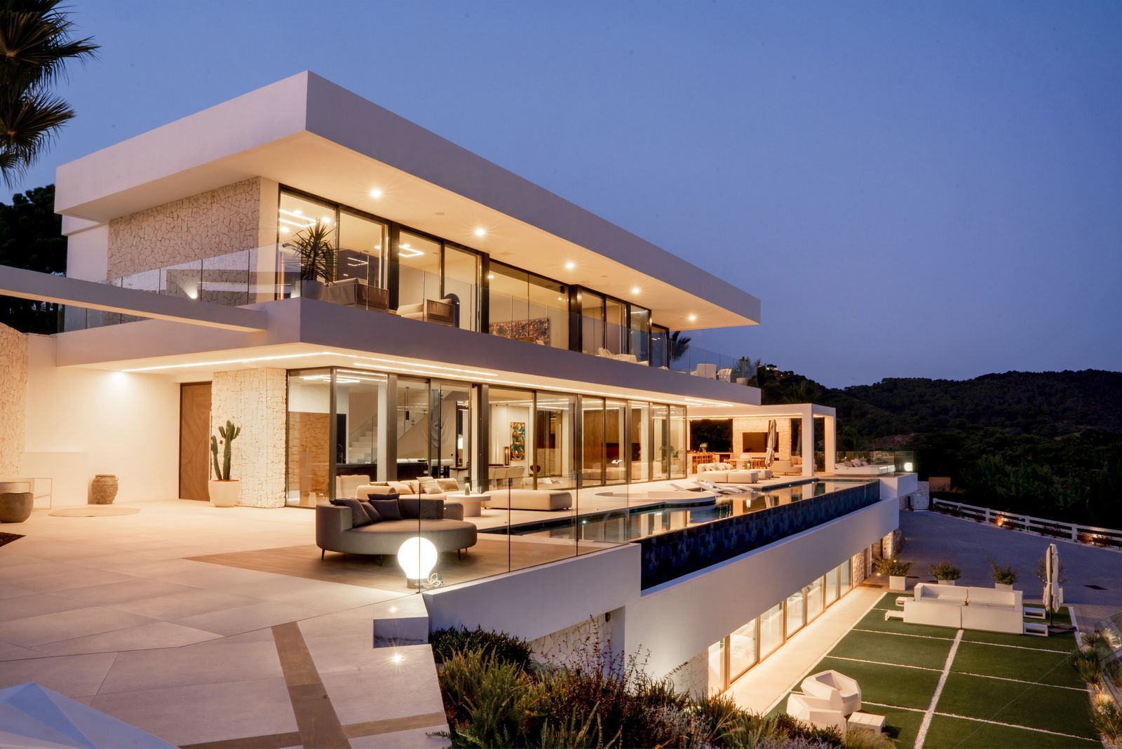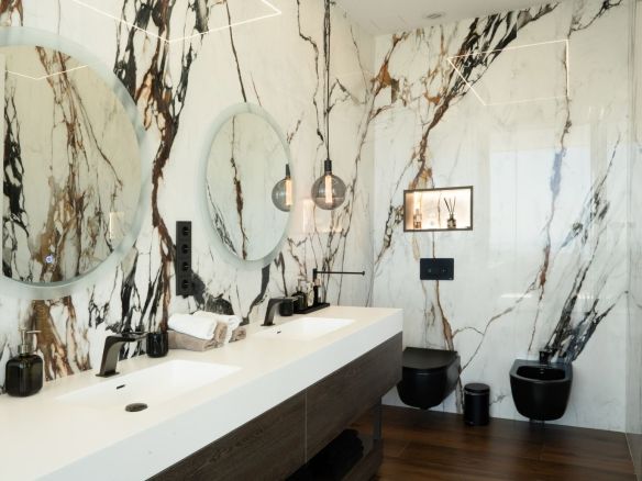 The open-plan layout is enhanced by top-quality materials, smart home technology, individual air conditioning/heating, and a private elevator connecting all floors.