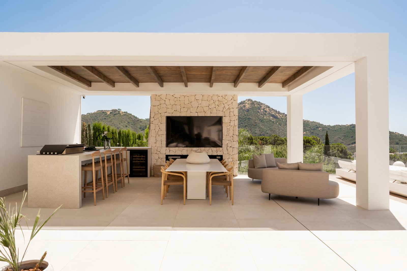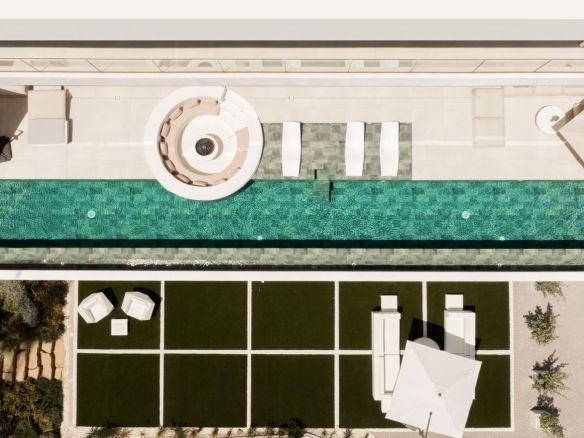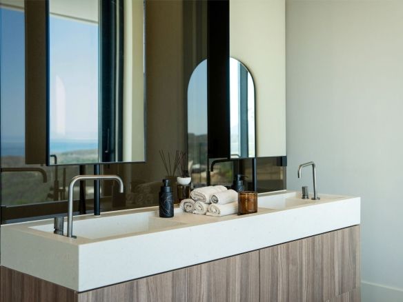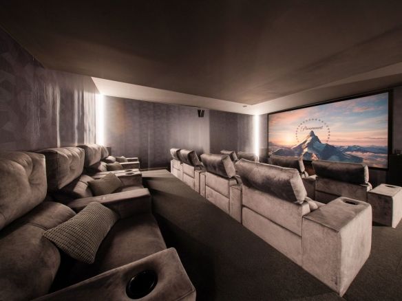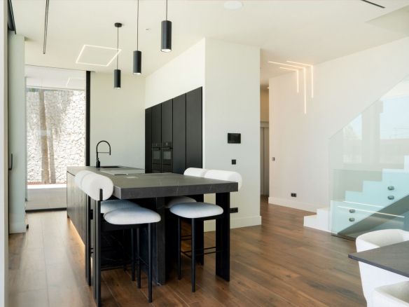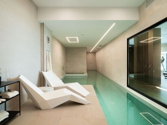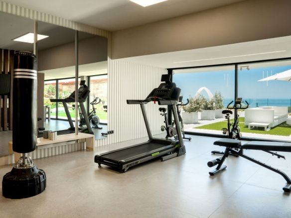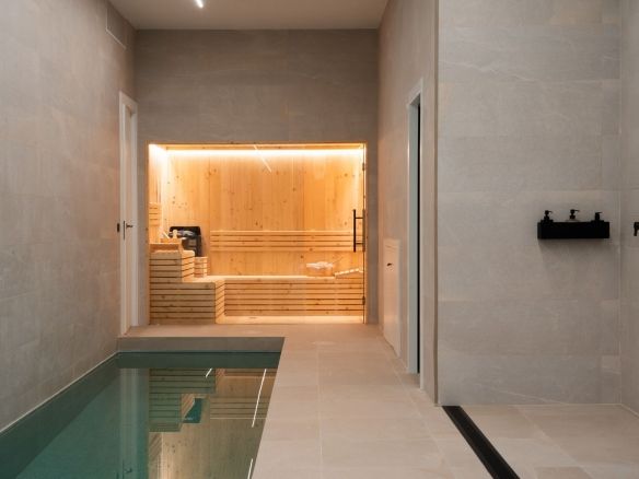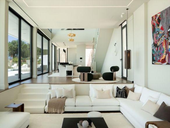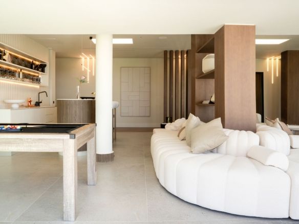 The spectacular basement level enjoys rare sea views and houses a full private wellness retreat, including a 24-meter heated indoor pool, sauna, a cold plunge pool, gym, and stylish bar. It also features a 16-seat cinema, bodega, second living room, and laundry area—ideal for both relaxation and entertaining.