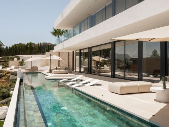 Located within the exclusive gated community of Monte Mayor in Benahavís, this brand-new modern villa offers an exceptional lifestyle experience. Set on a 2,068 m² plot and boasting 872 m² of refined living space, the property enjoys panoramic views over the Mediterranean Sea and surrounding mountains, blending contemporary luxury with natural beauty.